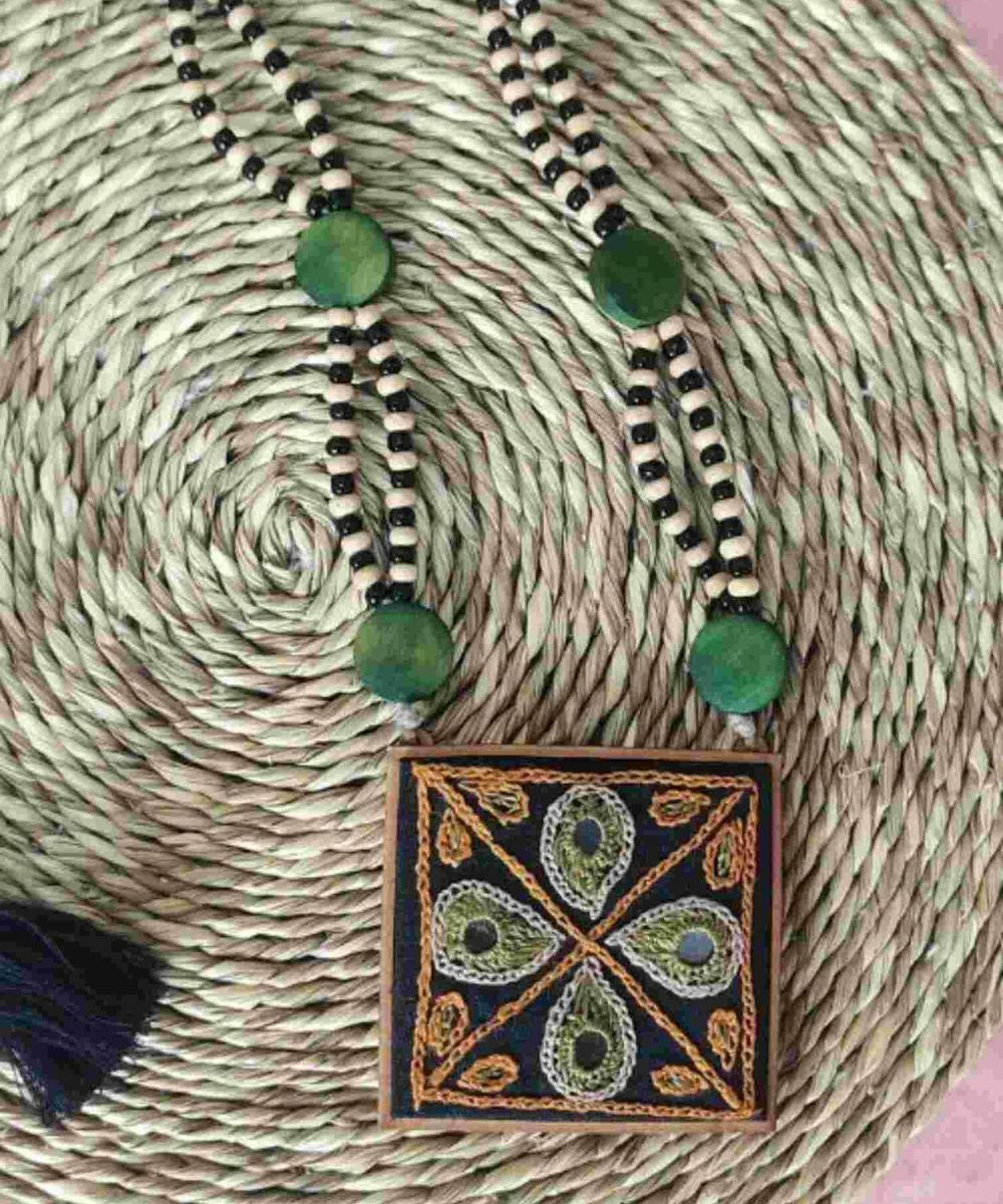 Add a touch of cultural elegance to your Navaratri ensemble with this exquisite statement jewelry piece. Crafted with detailed hand embroidery on fabric and embellished with vibrant beads, this design captures the essence of traditional craftsmanship. The colorful threads and intricate patterns make this piece perfect for enhancing your Garba or Dandiya outfit. Lightweight and comfortable, it is designed to ensure you shine through the festivities while staying true to the rich heritage of hand-embellished jewelry.