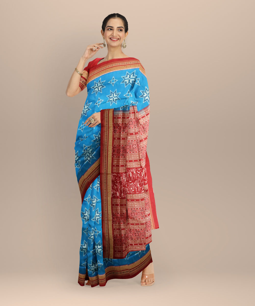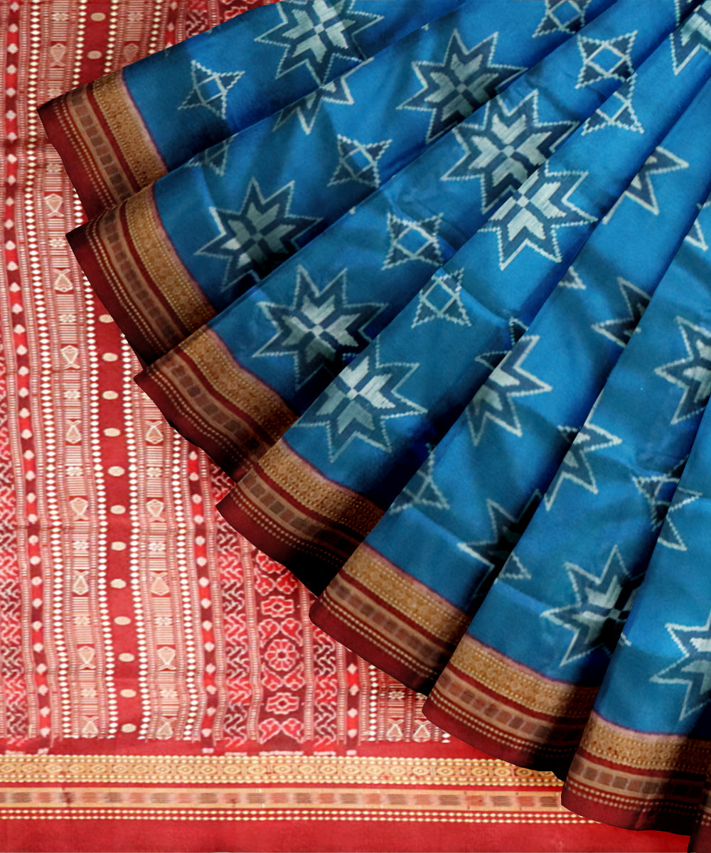 Navy blue maroon silk handloom sambalpuri saree