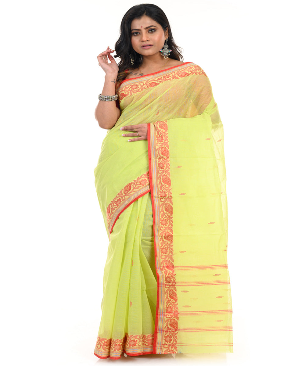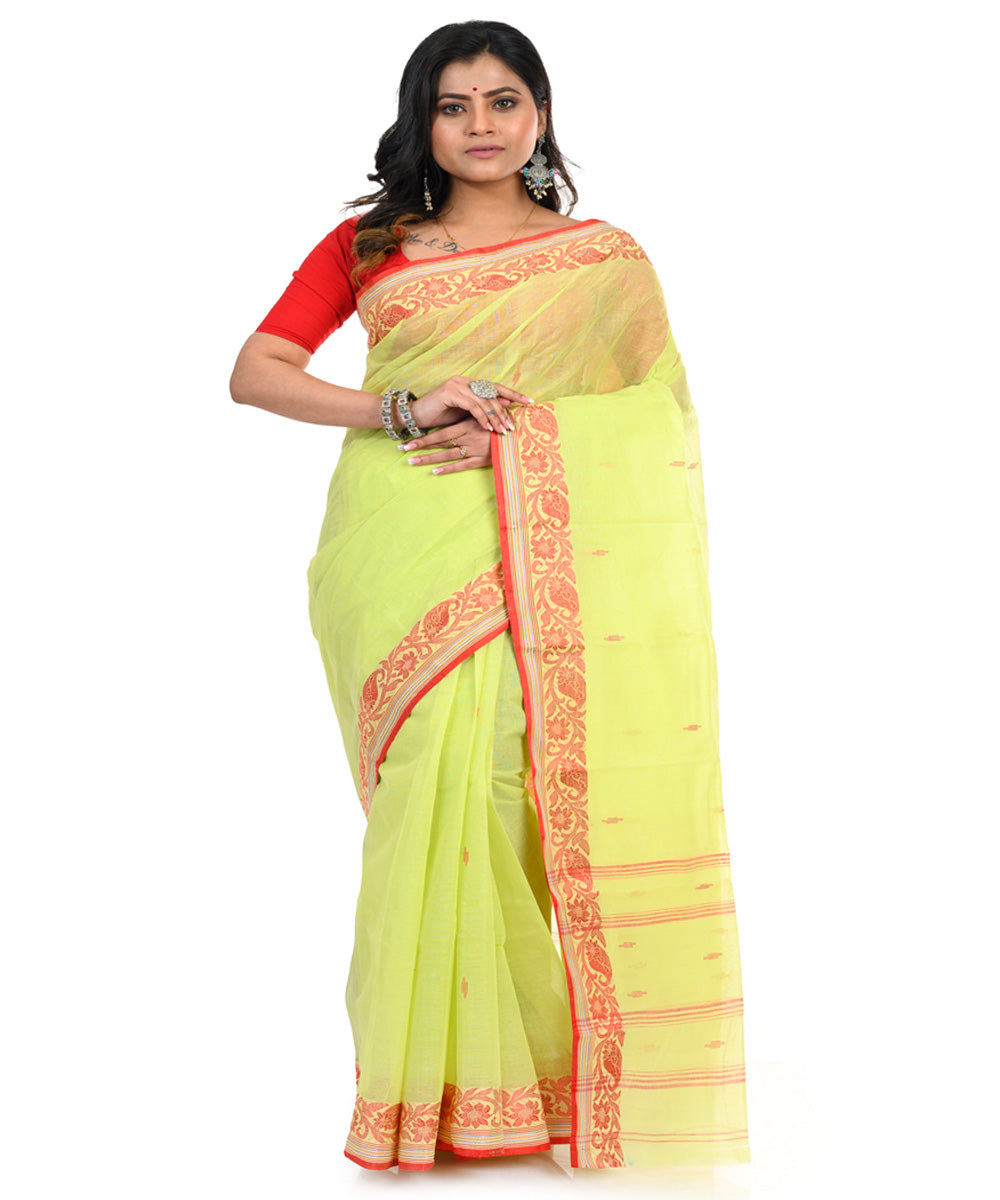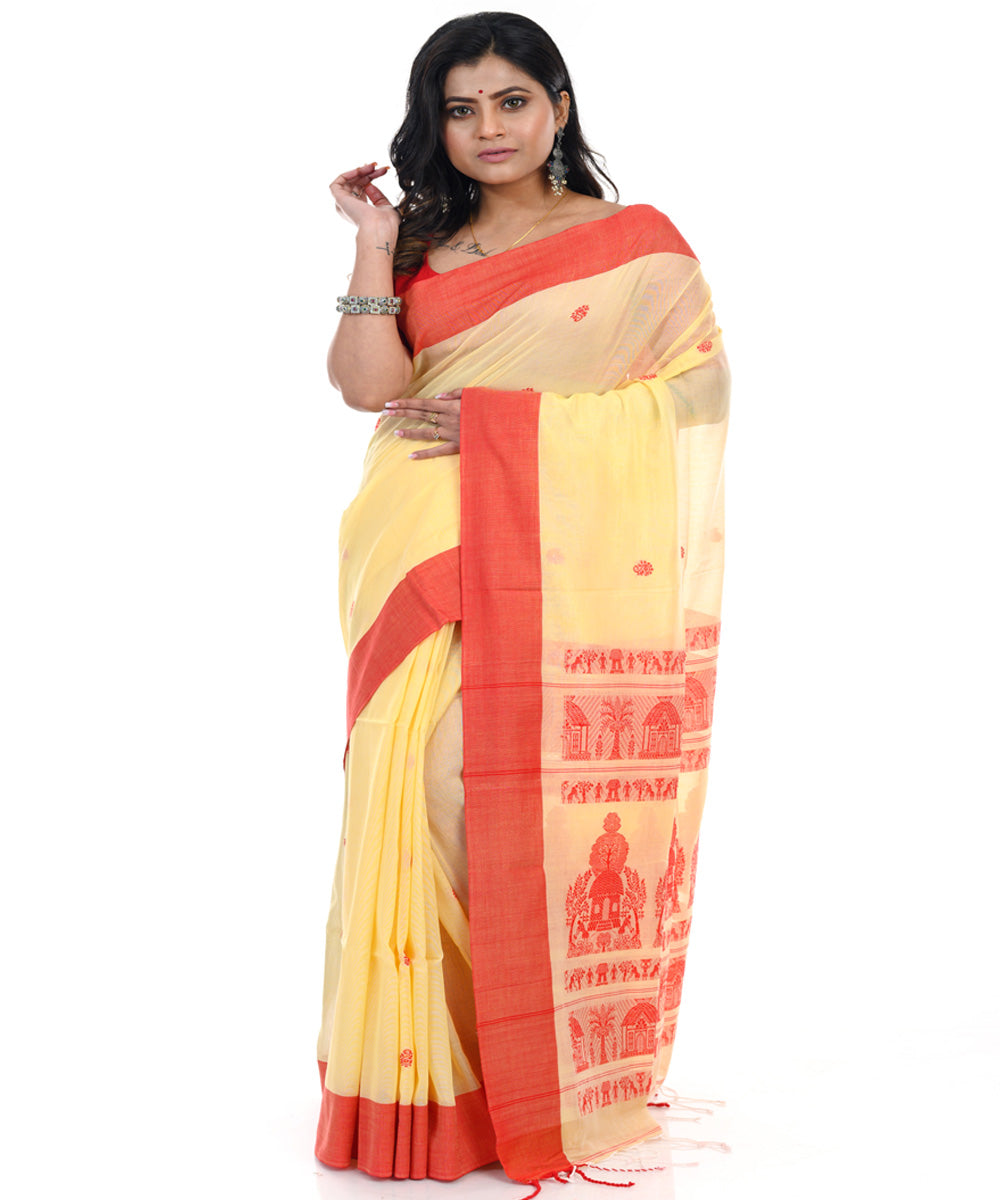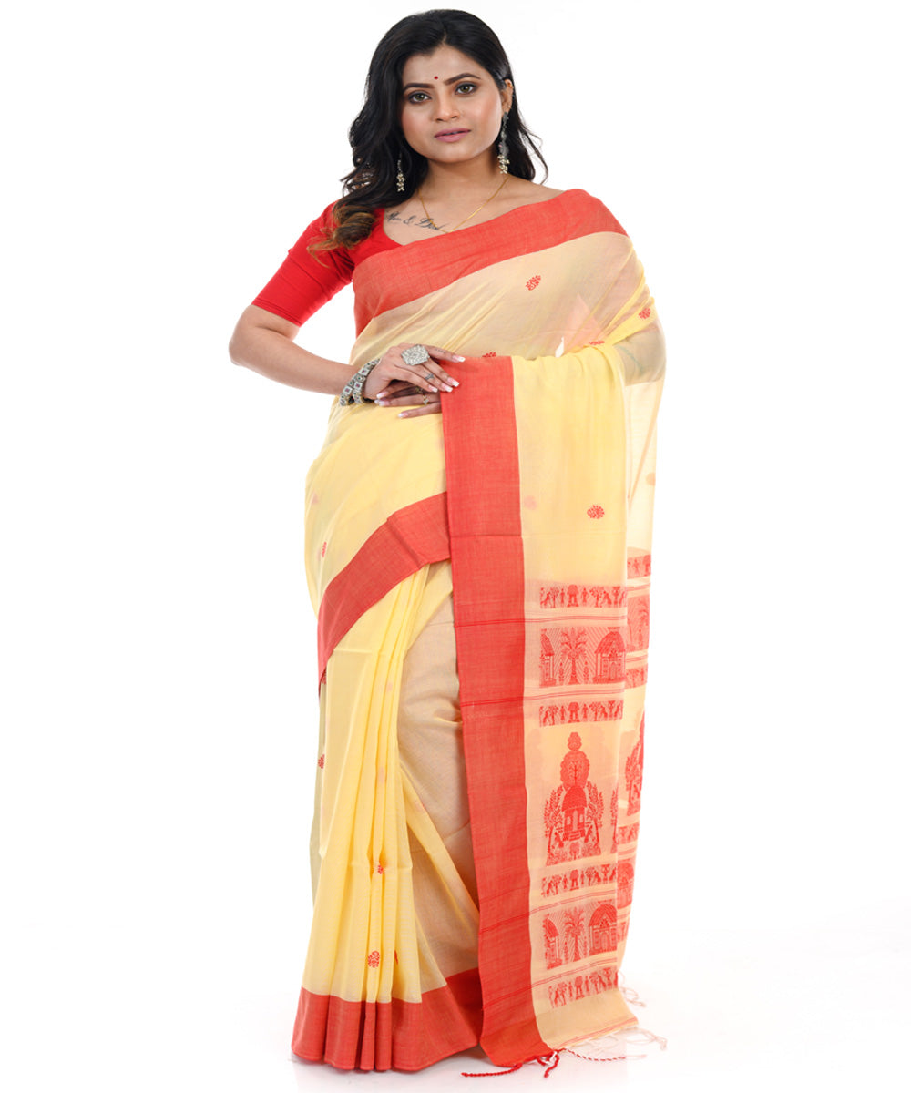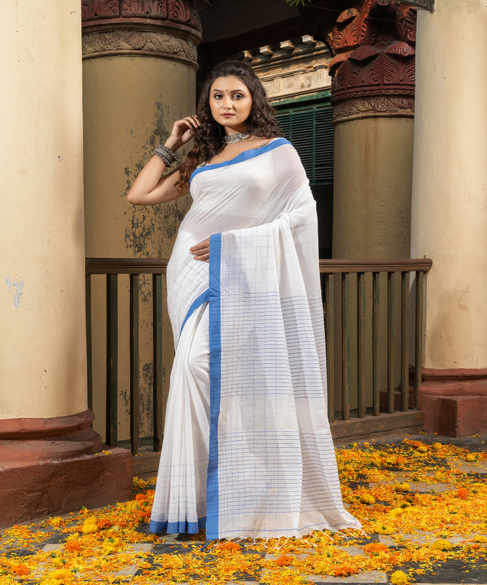 While synonymous with the reds and whites of Durga pooja, discover more of Bengal handloom varieties - Intricate jamdanis, skilled Kantha stitches, ancient baluchari weaves, simple cotton tants, explore more below.