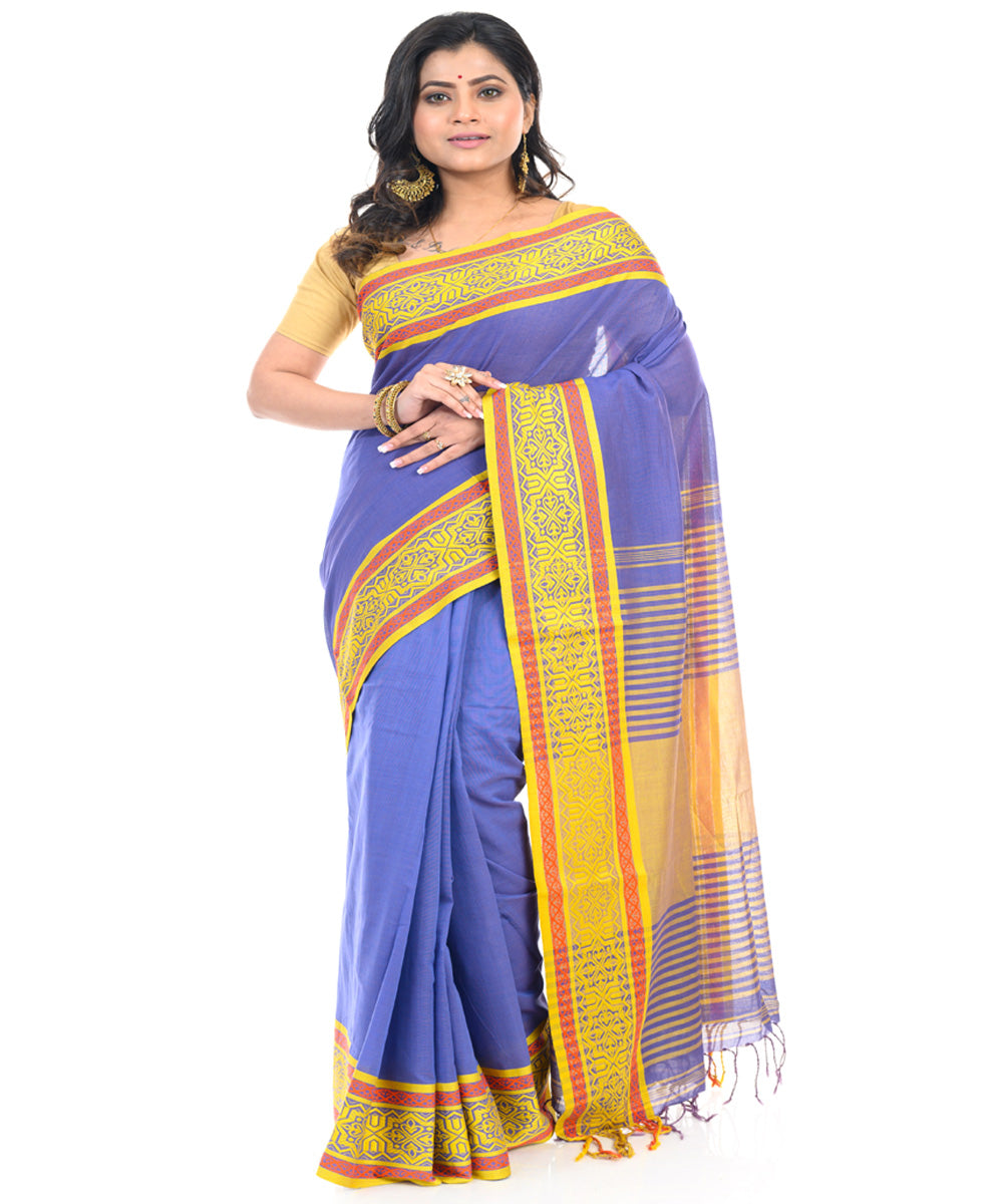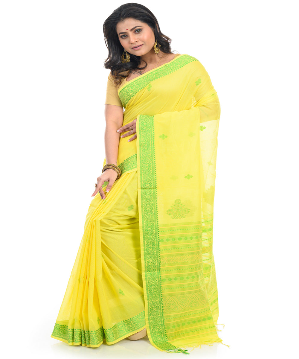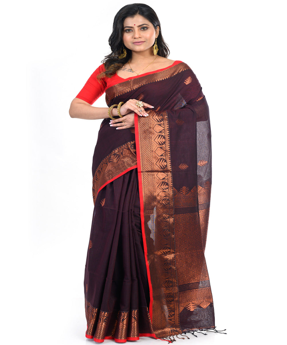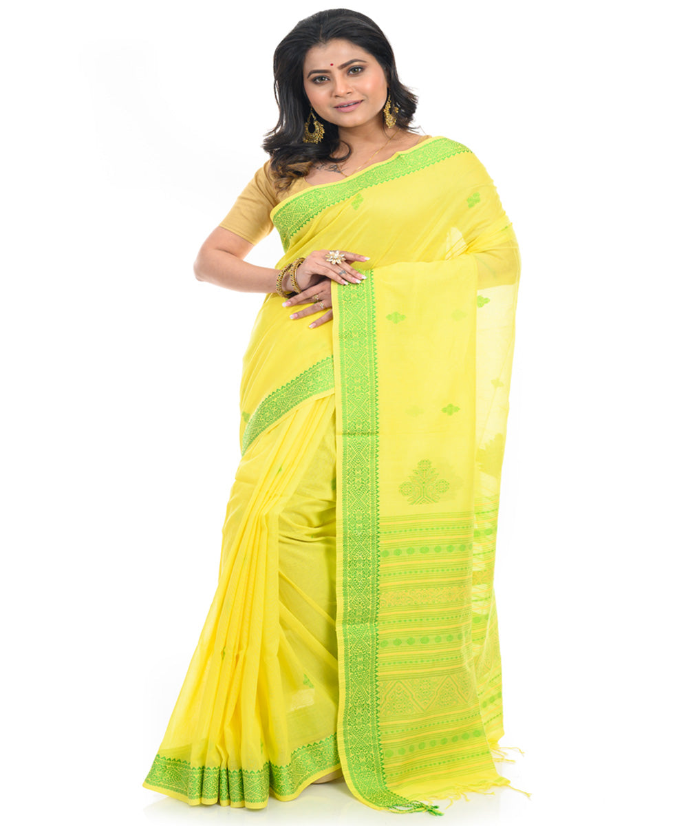 While synonymous with the reds and whites of Durga pooja, discover more of Bengal handloom varieties - Intricate jamdanis, skilled Kantha stitches, ancient baluchari weaves, simple cotton tants, explore more below.