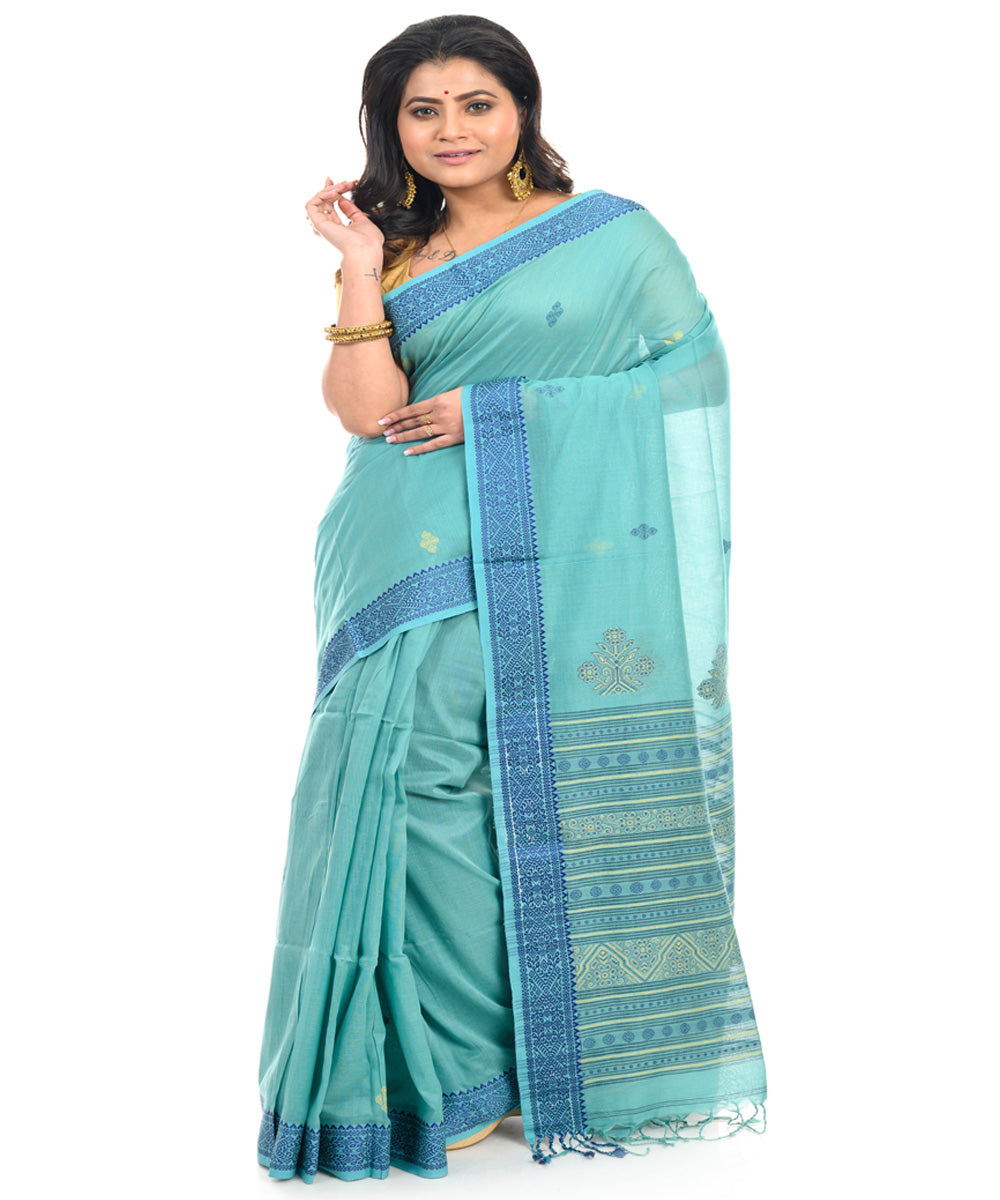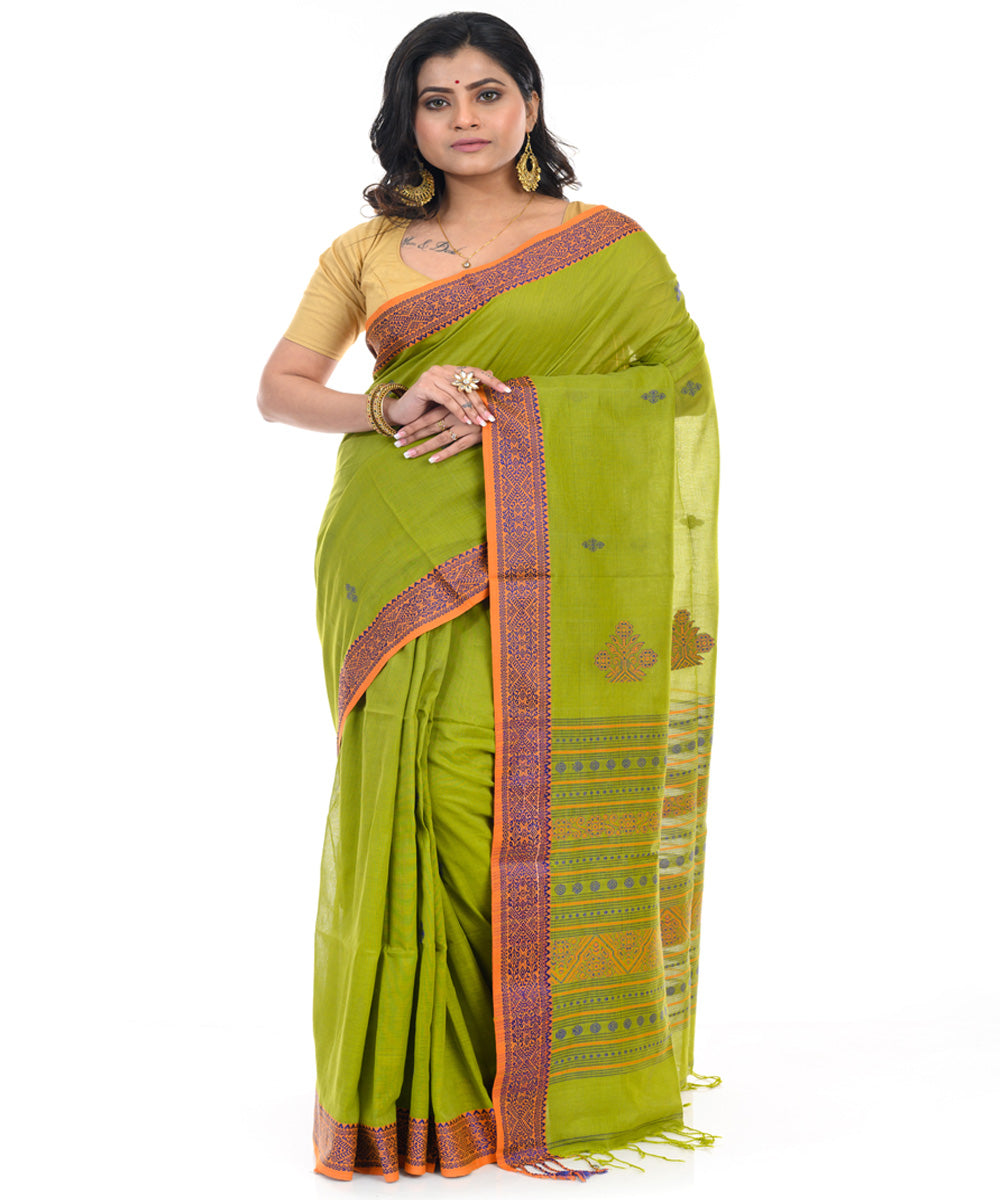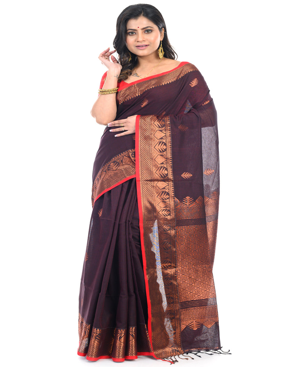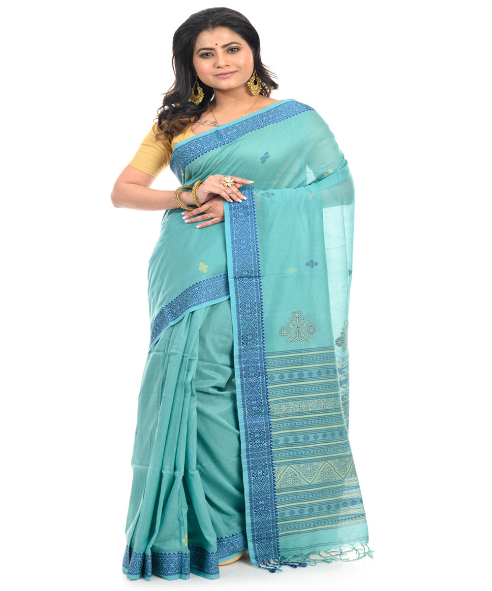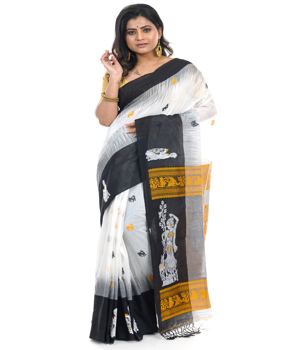 While synonymous with the reds and whites of Durga pooja, discover more of Bengal handloom varieties - Intricate jamdanis, skilled Kantha stitches, ancient baluchari weaves, simple cotton tants, explore more below.