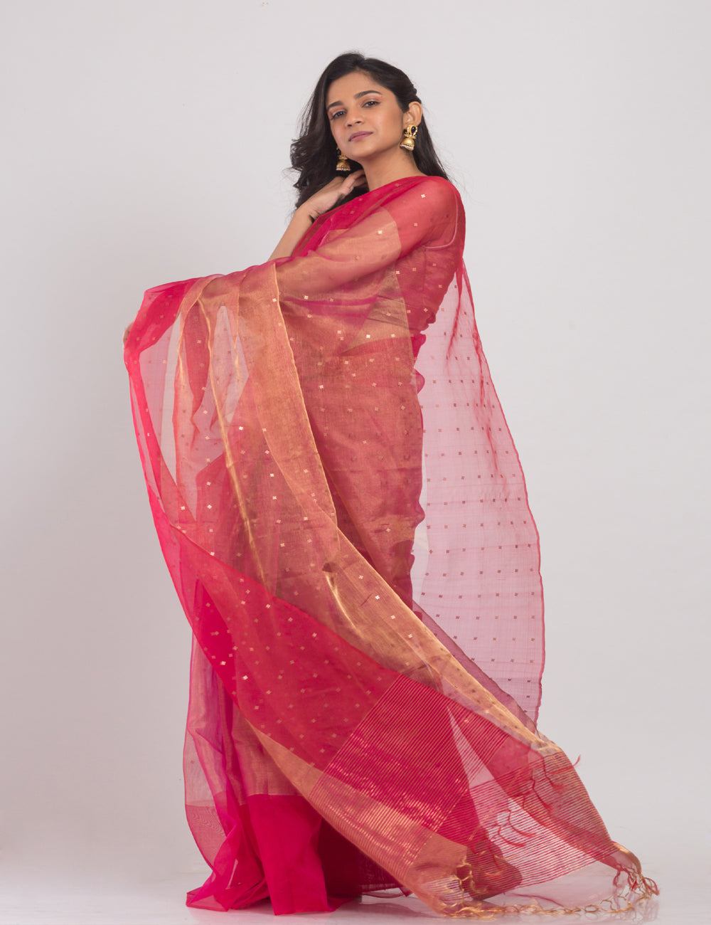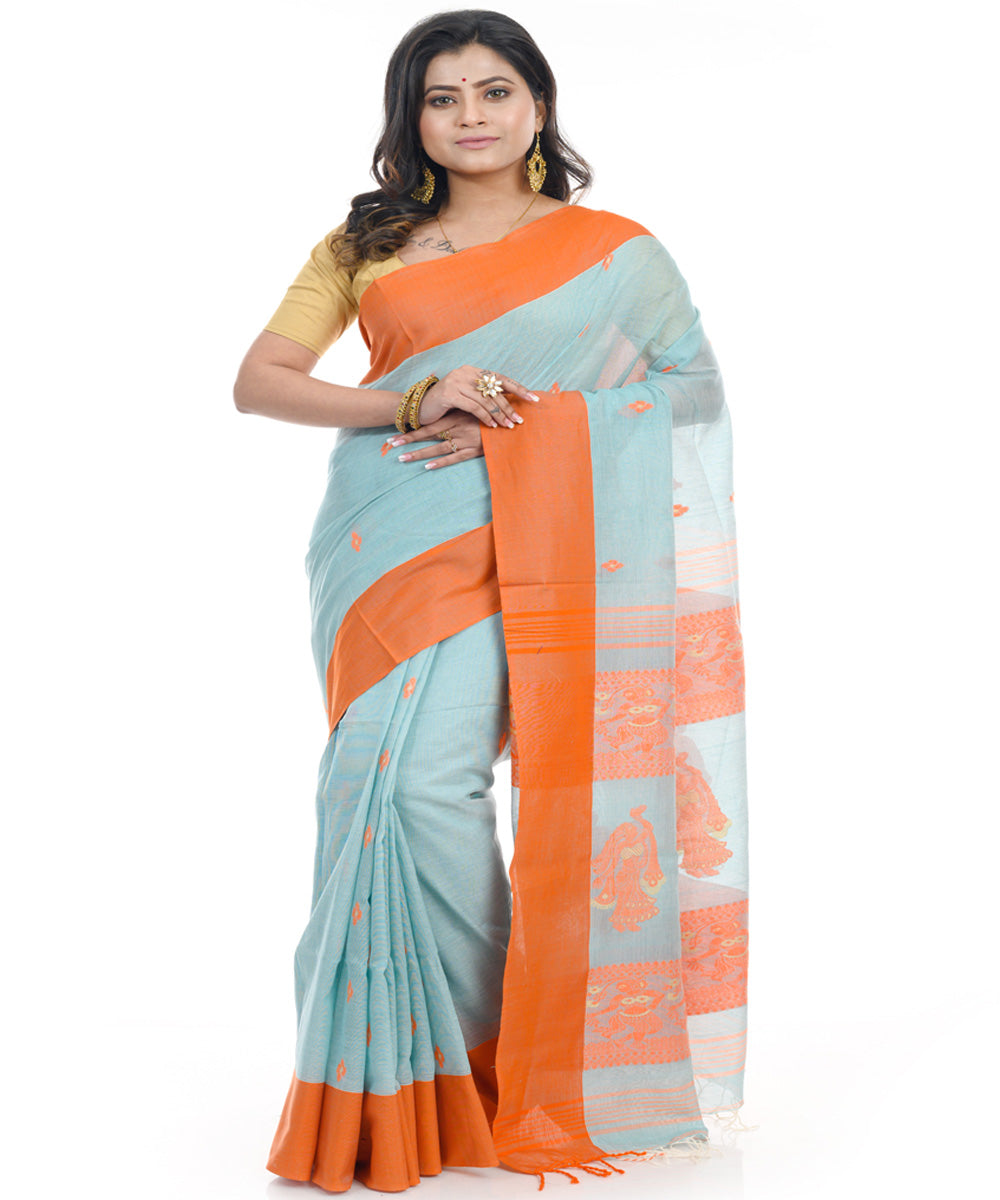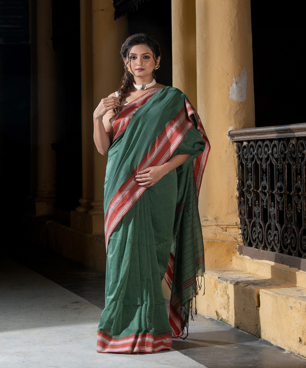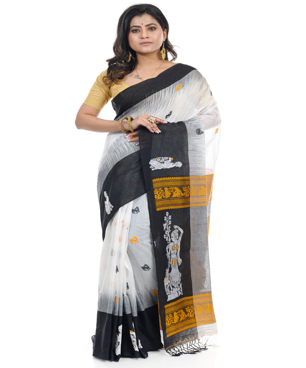 While synonymous with the reds and whites of Durga pooja, discover more of Bengal handloom varieties - Intricate jamdanis, skilled Kantha stitches, ancient baluchari weaves, simple cotton tants, explore more below.