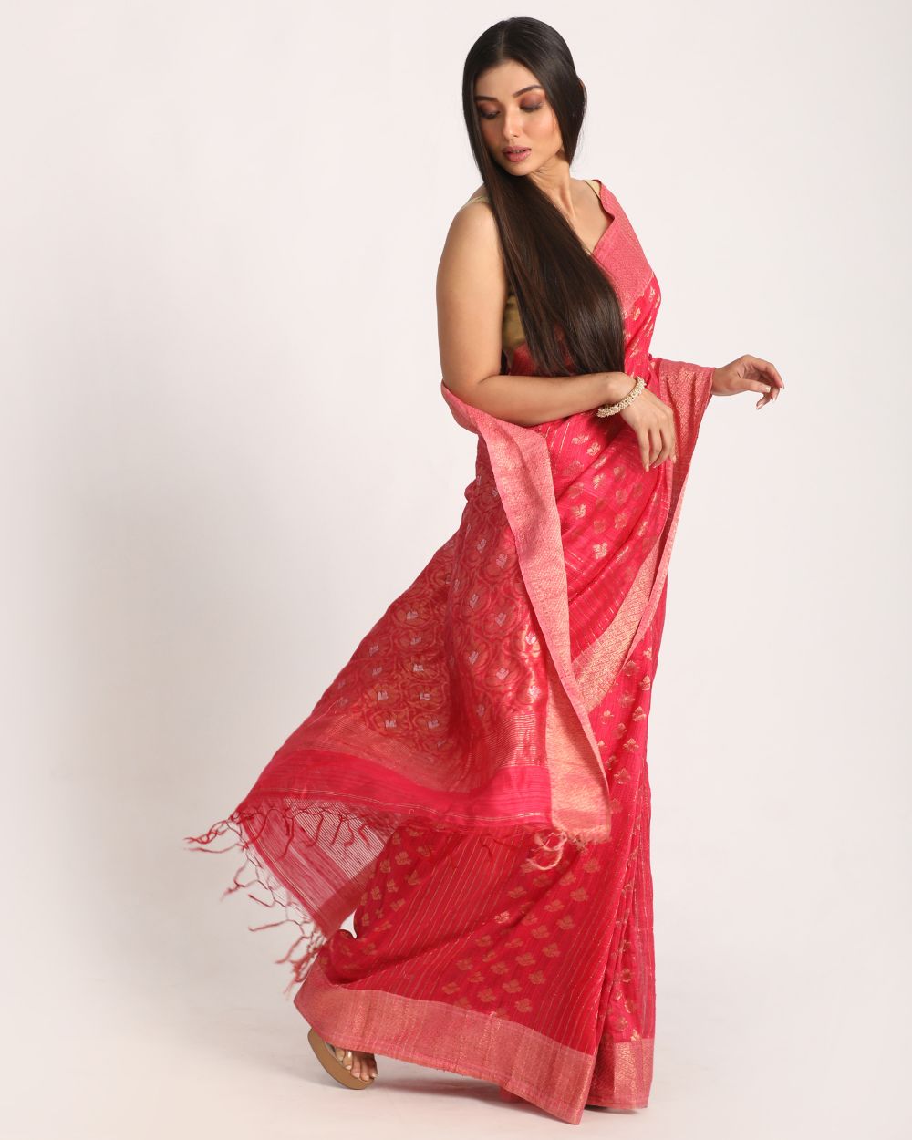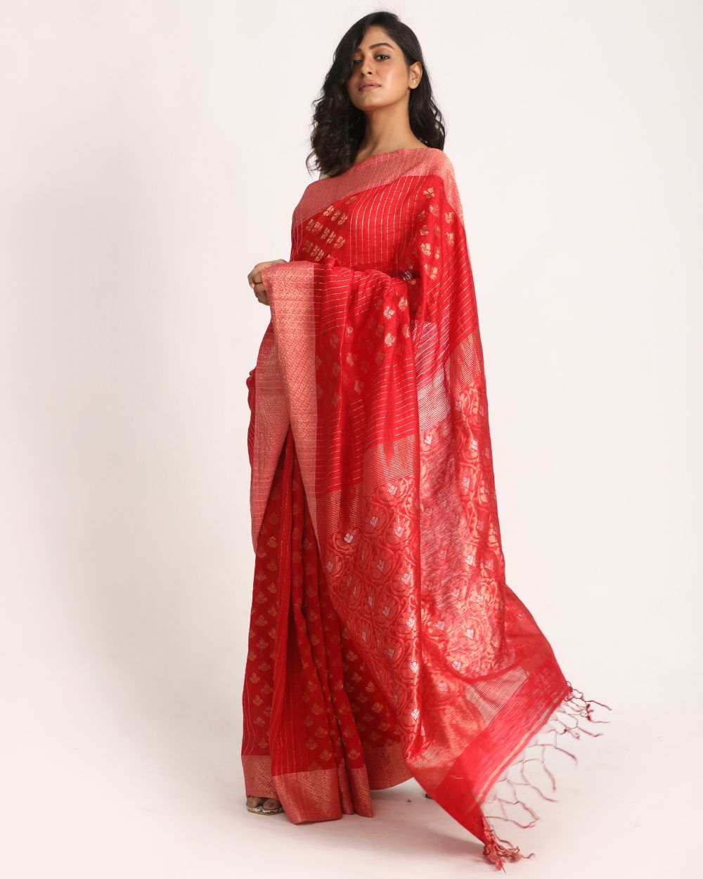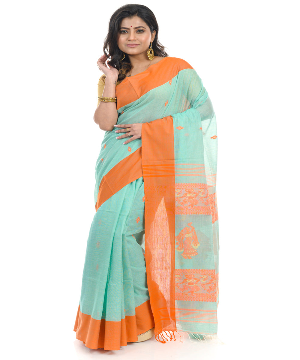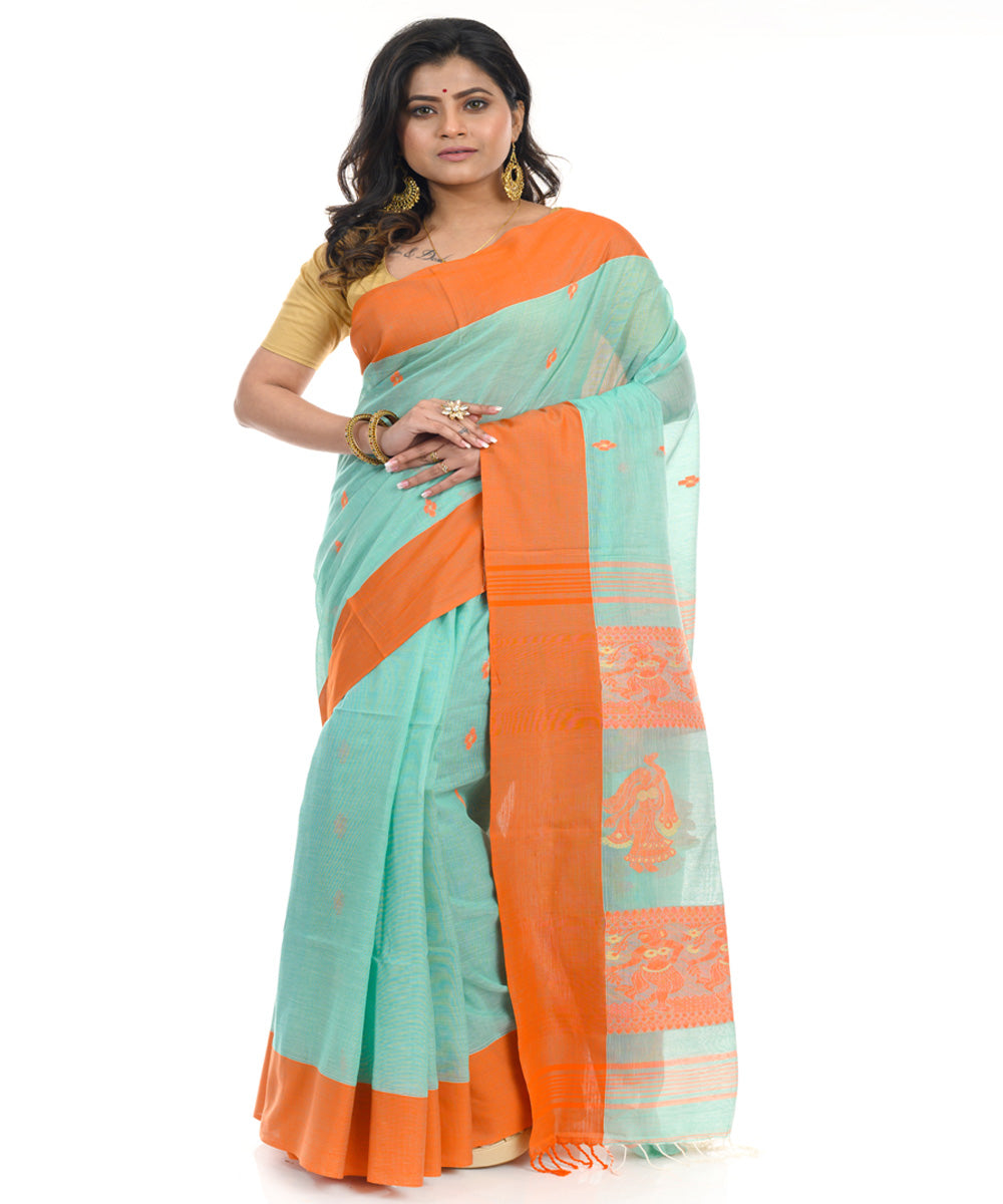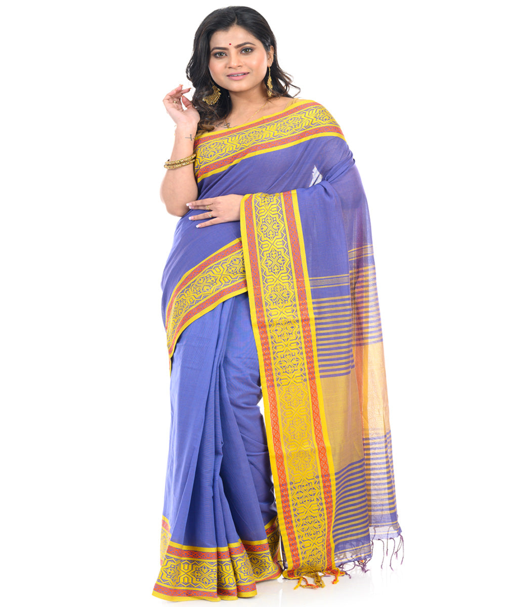 While synonymous with the reds and whites of Durga pooja, discover more of Bengal handloom varieties - Intricate jamdanis, skilled Kantha stitches, ancient baluchari weaves, simple cotton tants, explore more below.