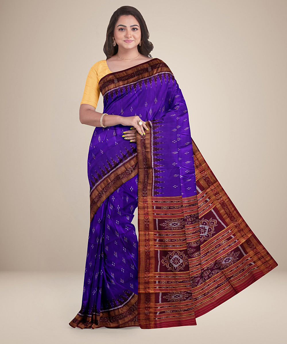 Lavender purple red silk handwoven khandua saree