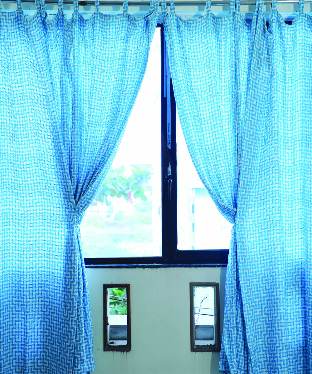 Marine blue handwoven multi treadle cotton curtain set of 4