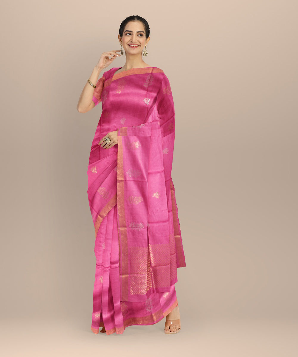 Baby pink tussar silk chhattisgarh handloom saree