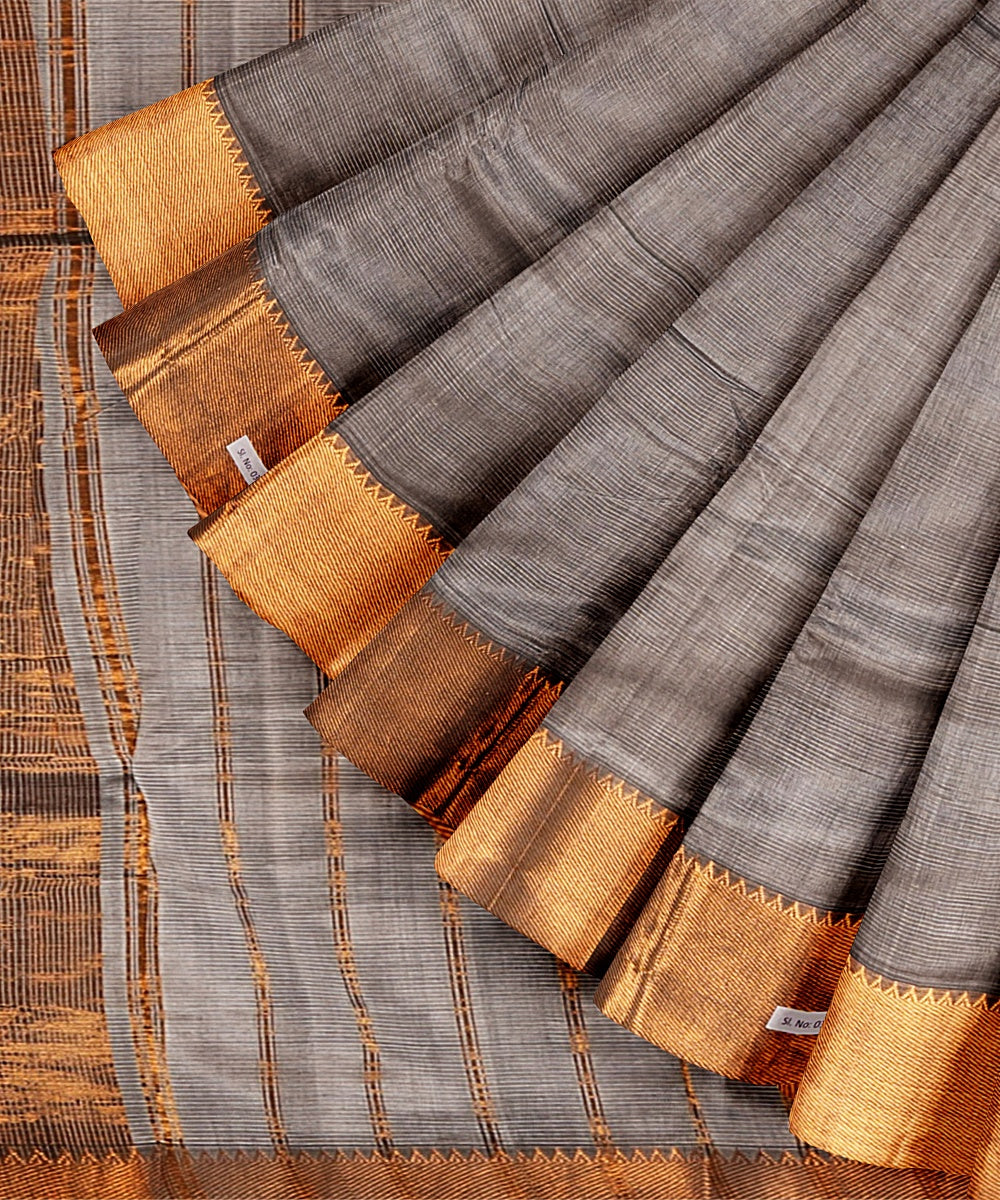 Grey handwoven mangalagiri cotton silk saree