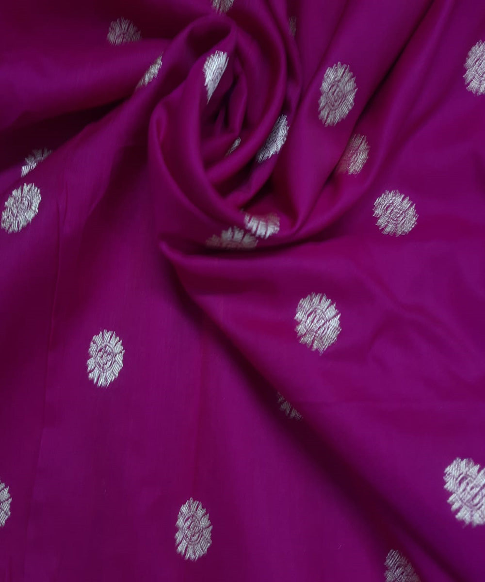 Pink handwoven phekwa buti cotton silk banarasi fabric