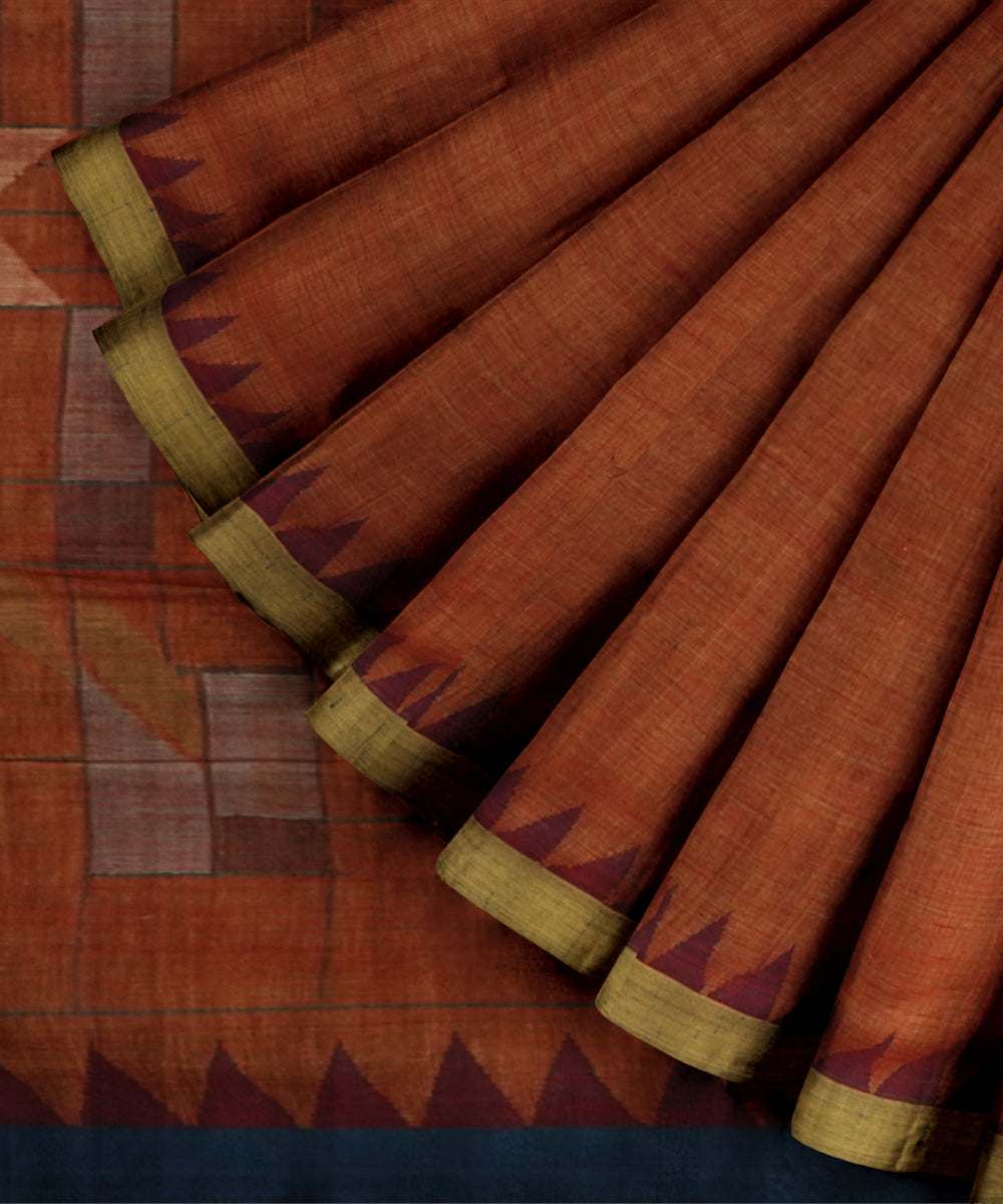 Red yellow cotton handloom natural dyed saree
