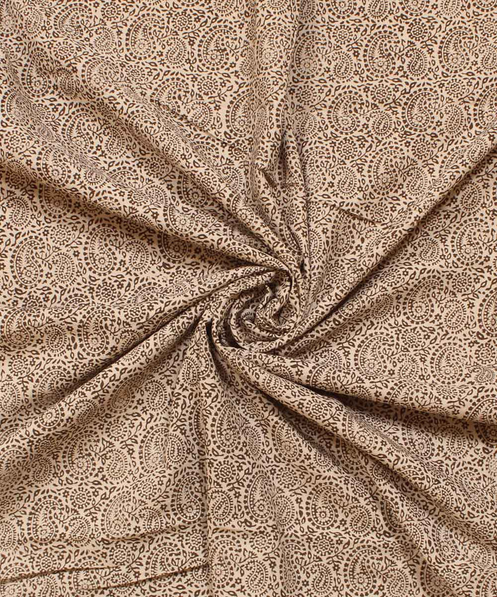 Cream grey cotton hand block bagh printed fabric