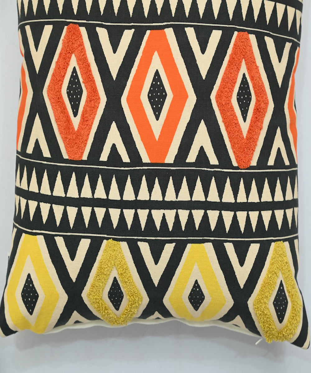 Multicolor black olive hand printed cotton cushion cover