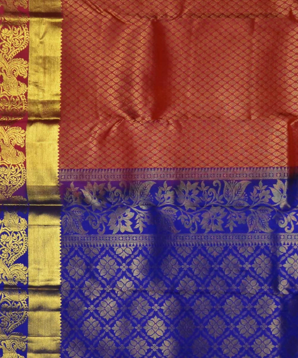 Bronze pink and Royal Blue Handloom Brocade Silk Saree