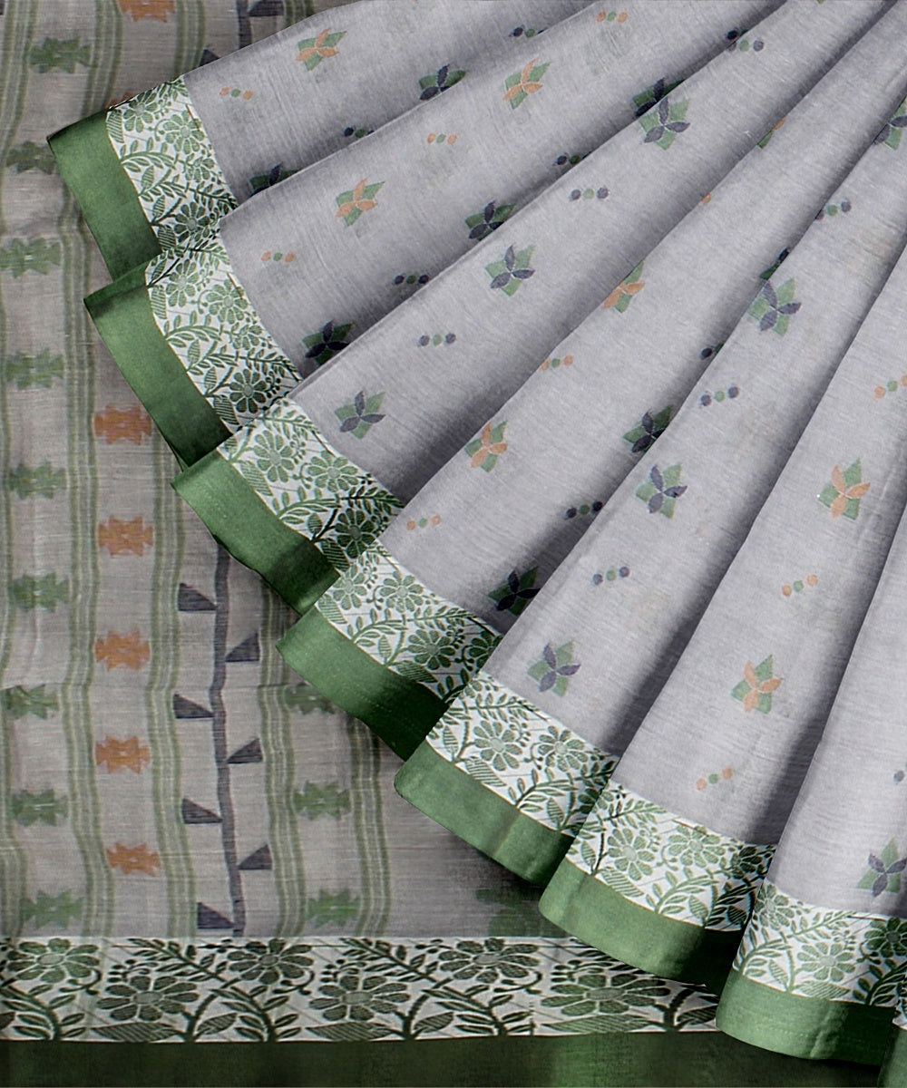 Light grey green tangail cotton handloom saree