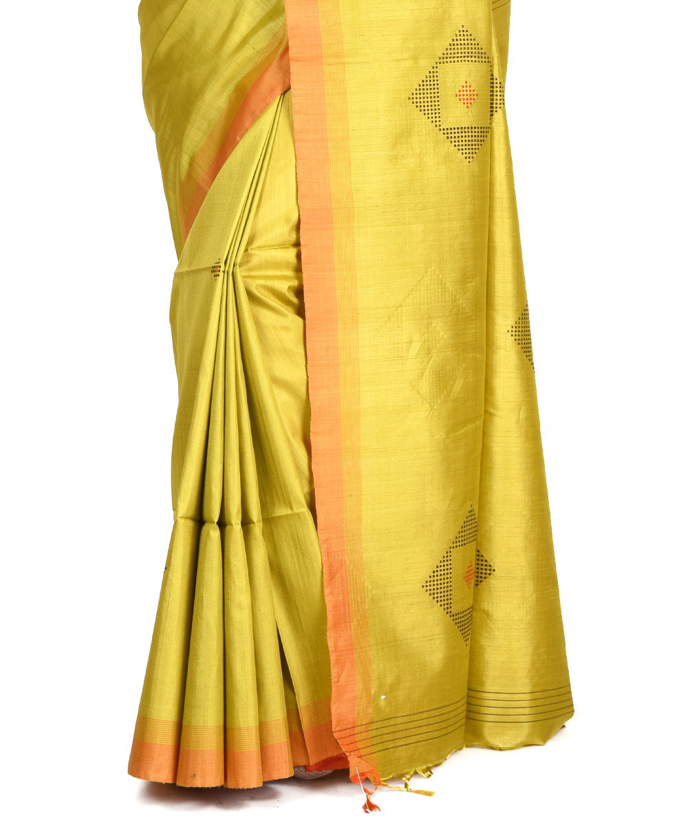 This Hand Woven Designer Mulberry Silk Saree has been woven in a thread count of 20/22 Denier twisted Mulberry Silk in warp way and hand spun tussar in weft way.