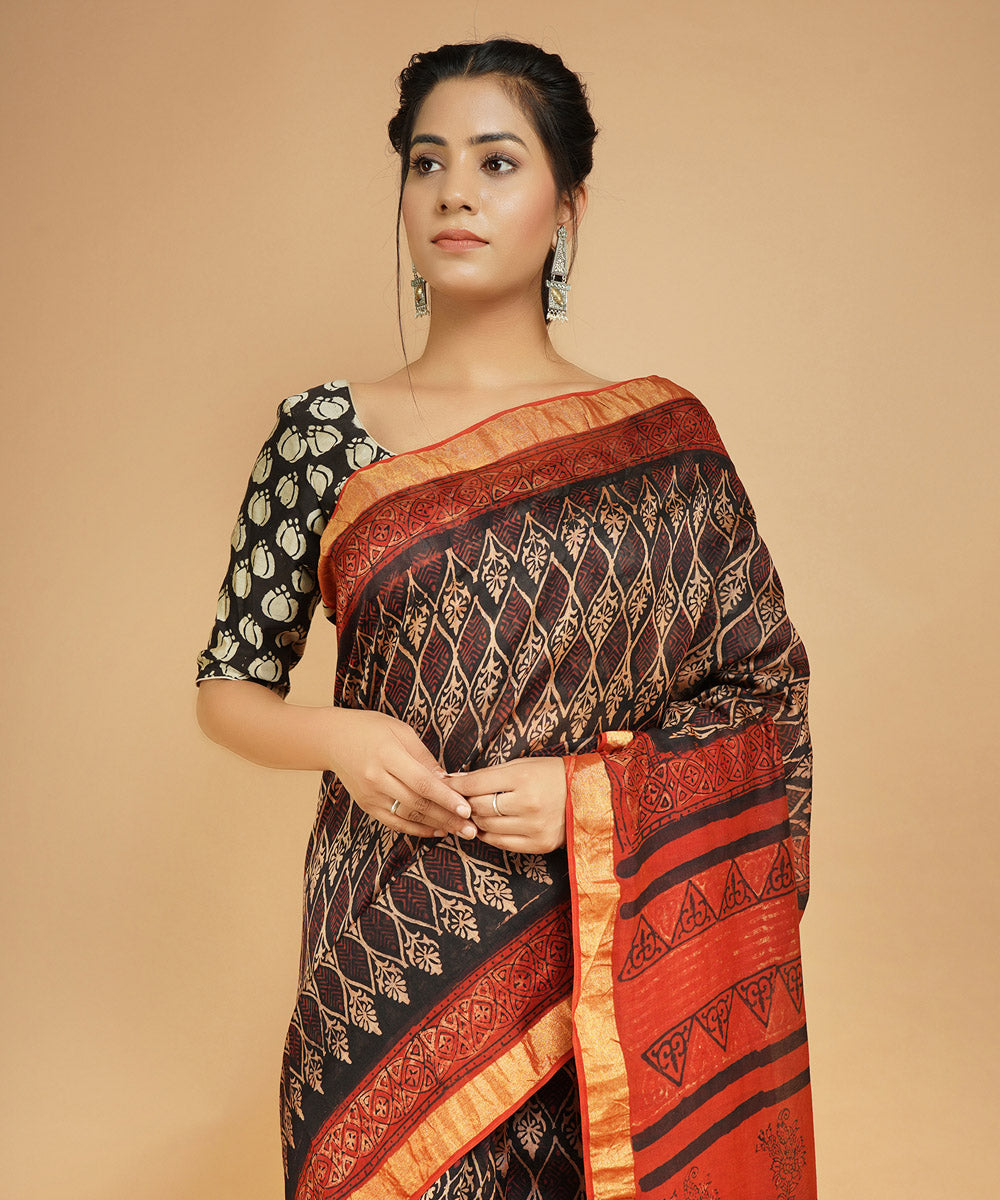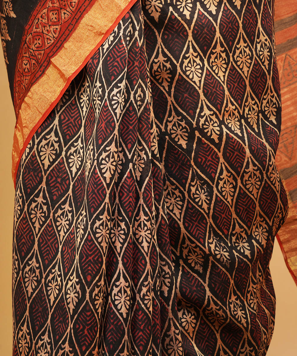 Multicolor ajrakh cotton silk ajrakh sari