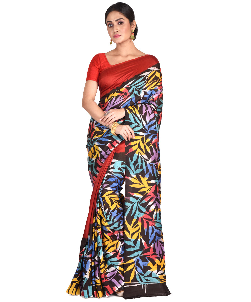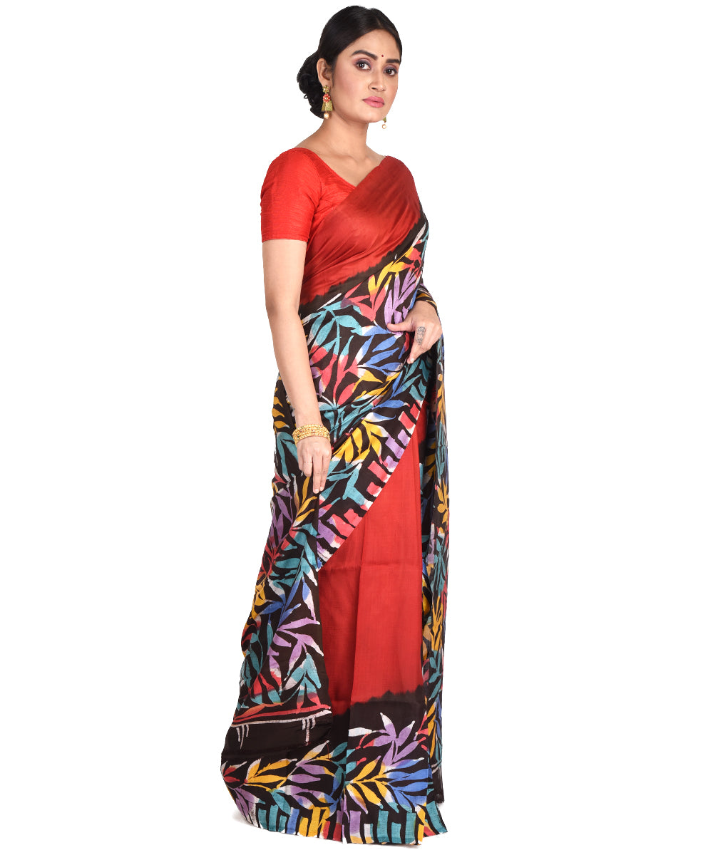 This Saree has been woven in a thread count of 18/20 Denier Mulberry Silk in warp way 2 ply Mulberry Silk in weft way, and then Hand Batik done on it.