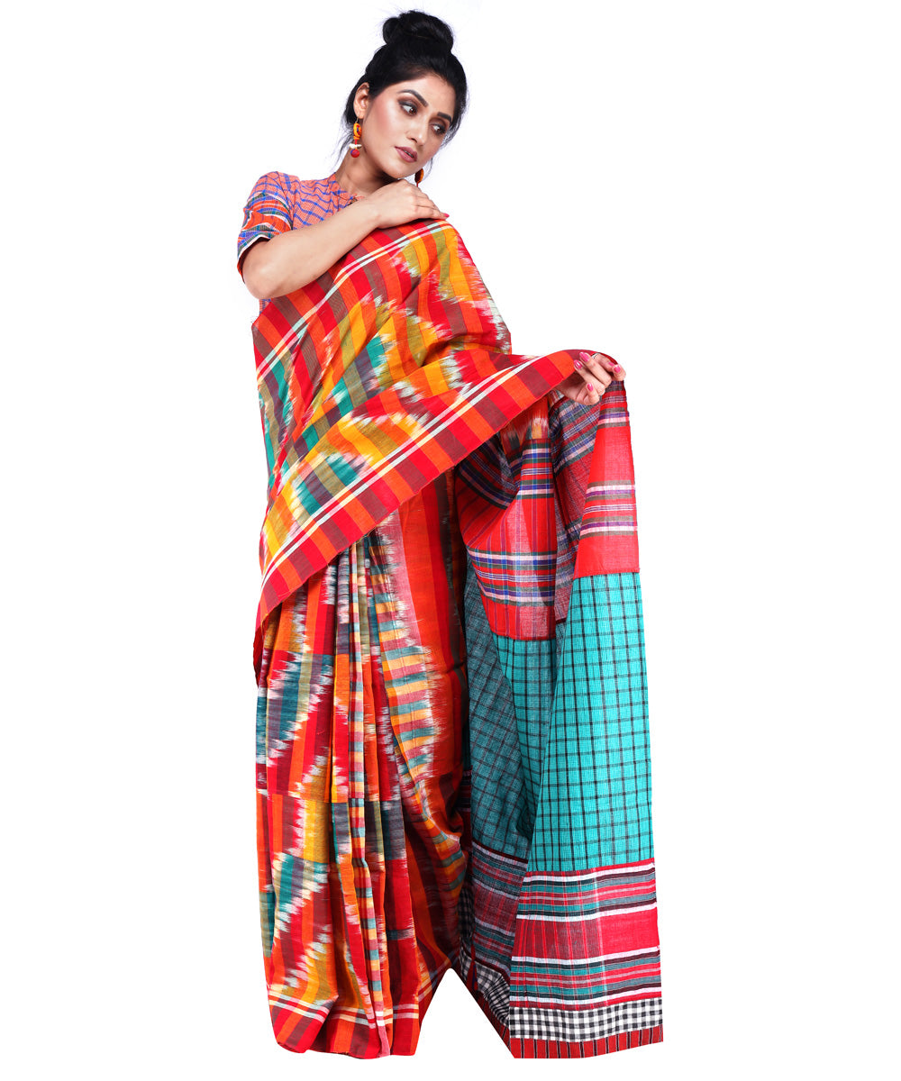 Multicolor cyan blue cotton handloom gamcha saree