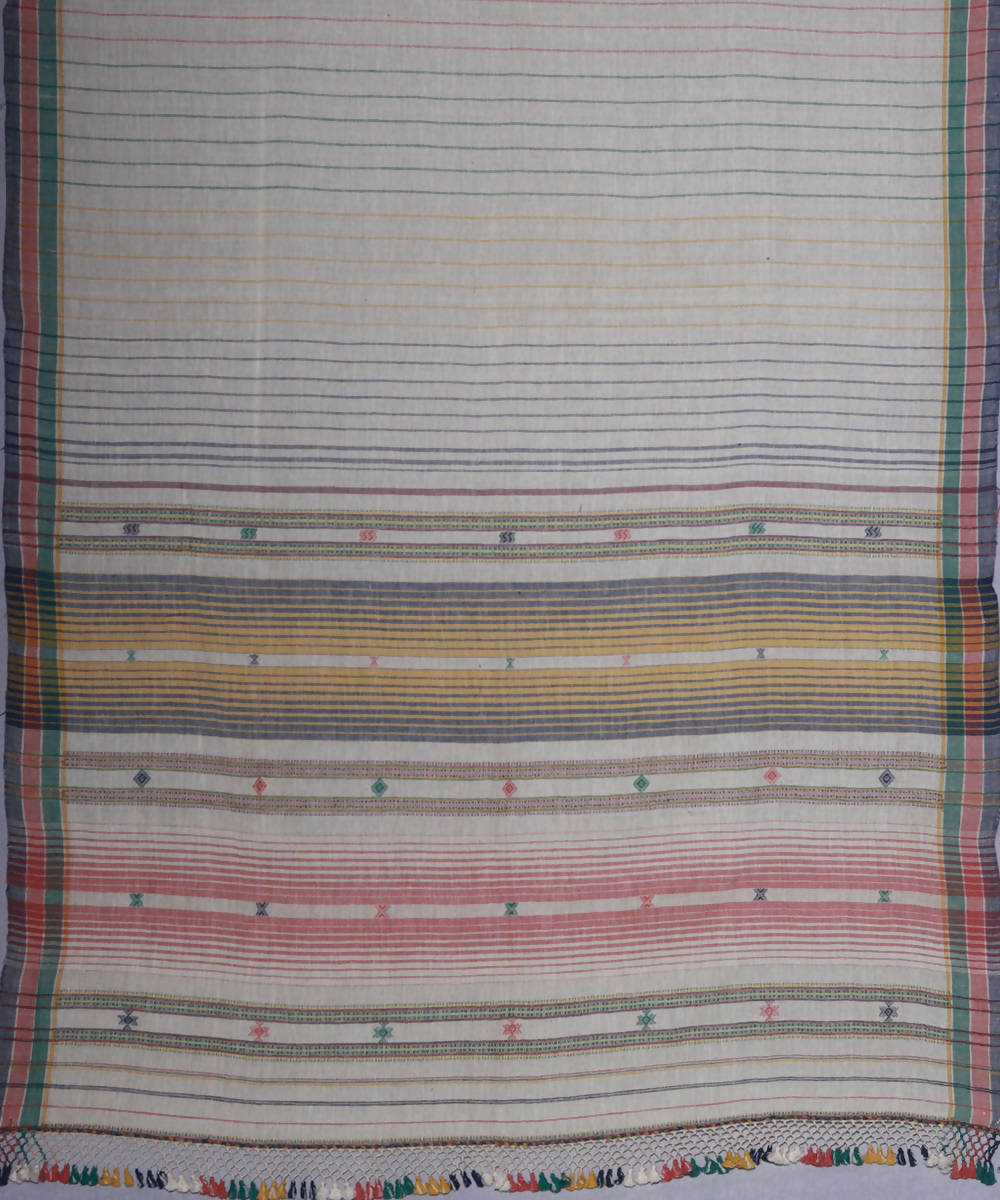 Multicolor striped handwoven kutchi weave kala cotton saree