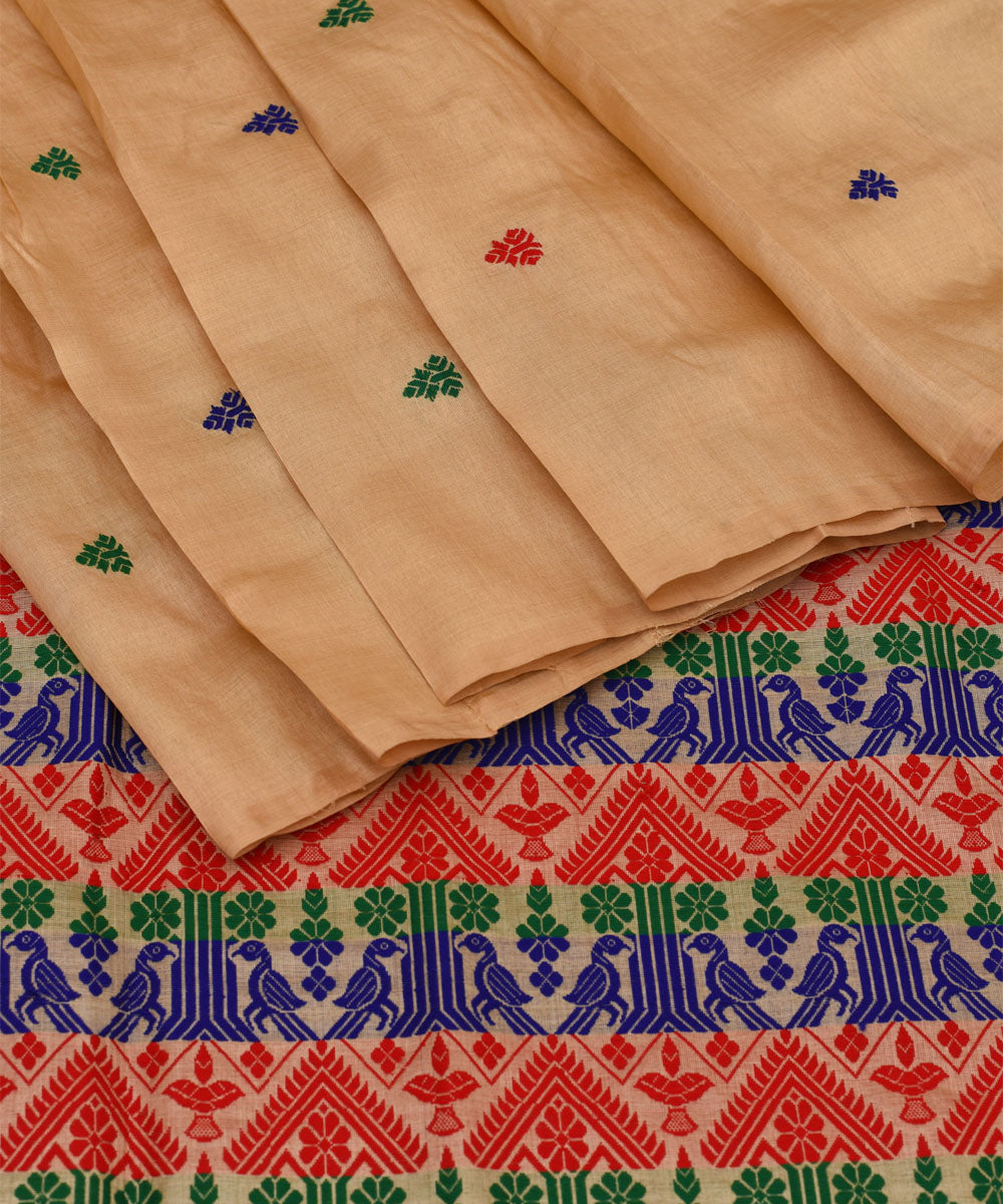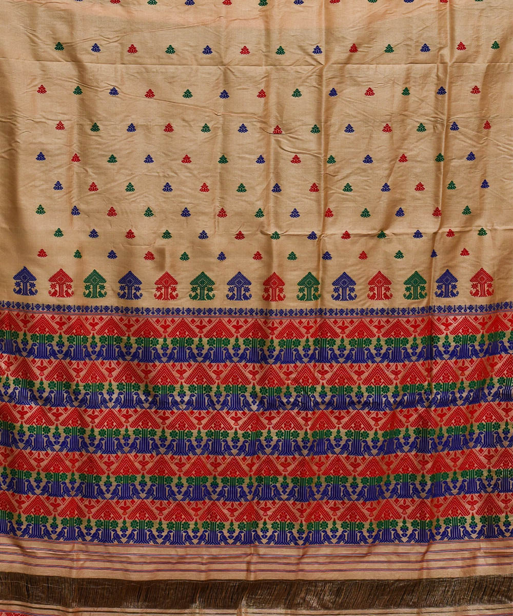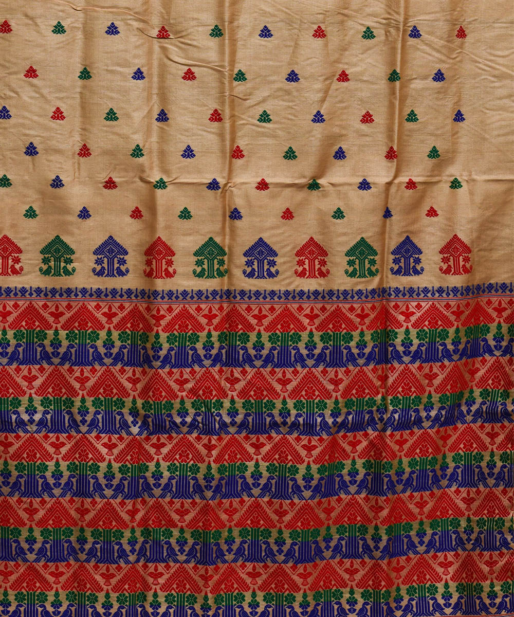 Purbashree beige multicolor handwoven tussar muga silk assam saree