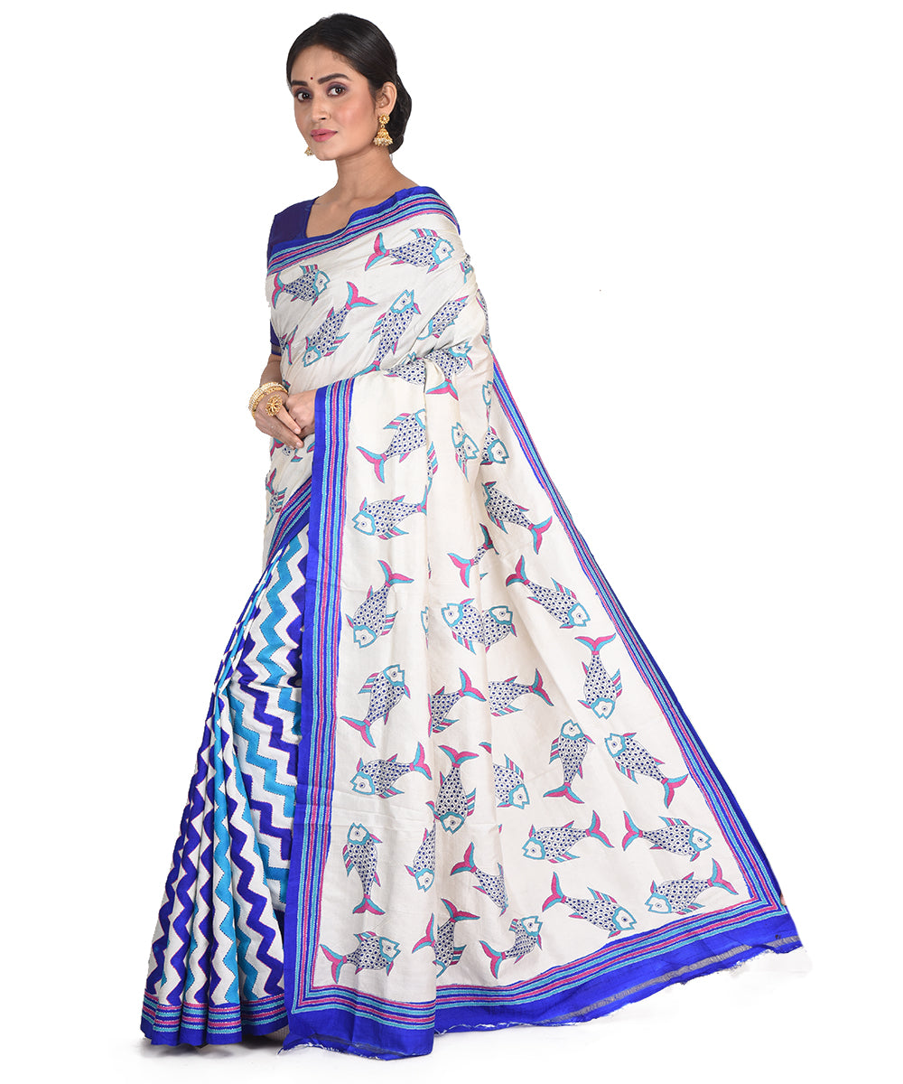This Pure Silk Saree has been woven in a thread count of 18/20 Denier Mulberry Silk in warp way and 3 Ply Mulberry Silk in weft way and then Kantha Stitch done on it.