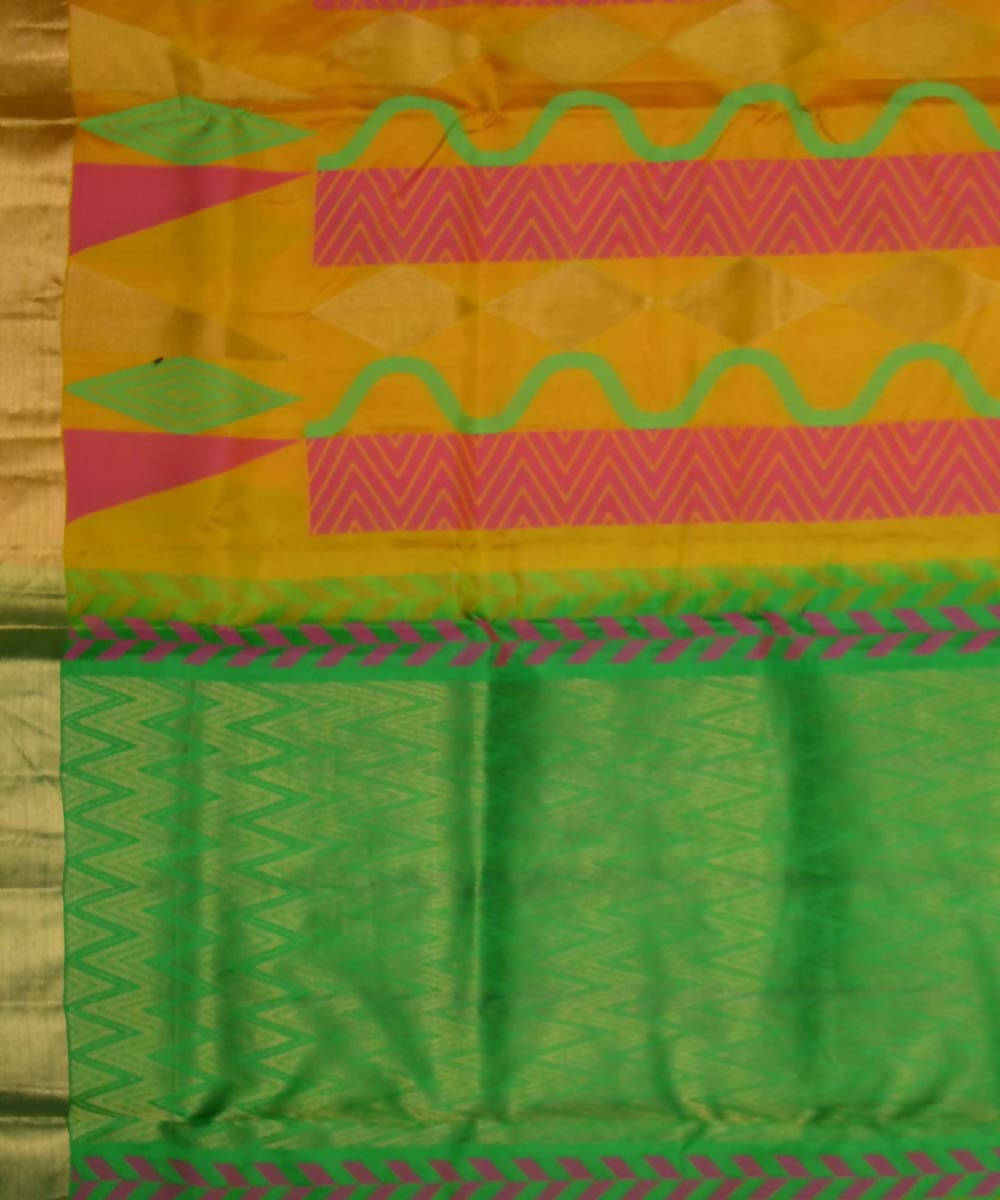 Yellow Green Handloom Brocade Work Soft Silk Saree