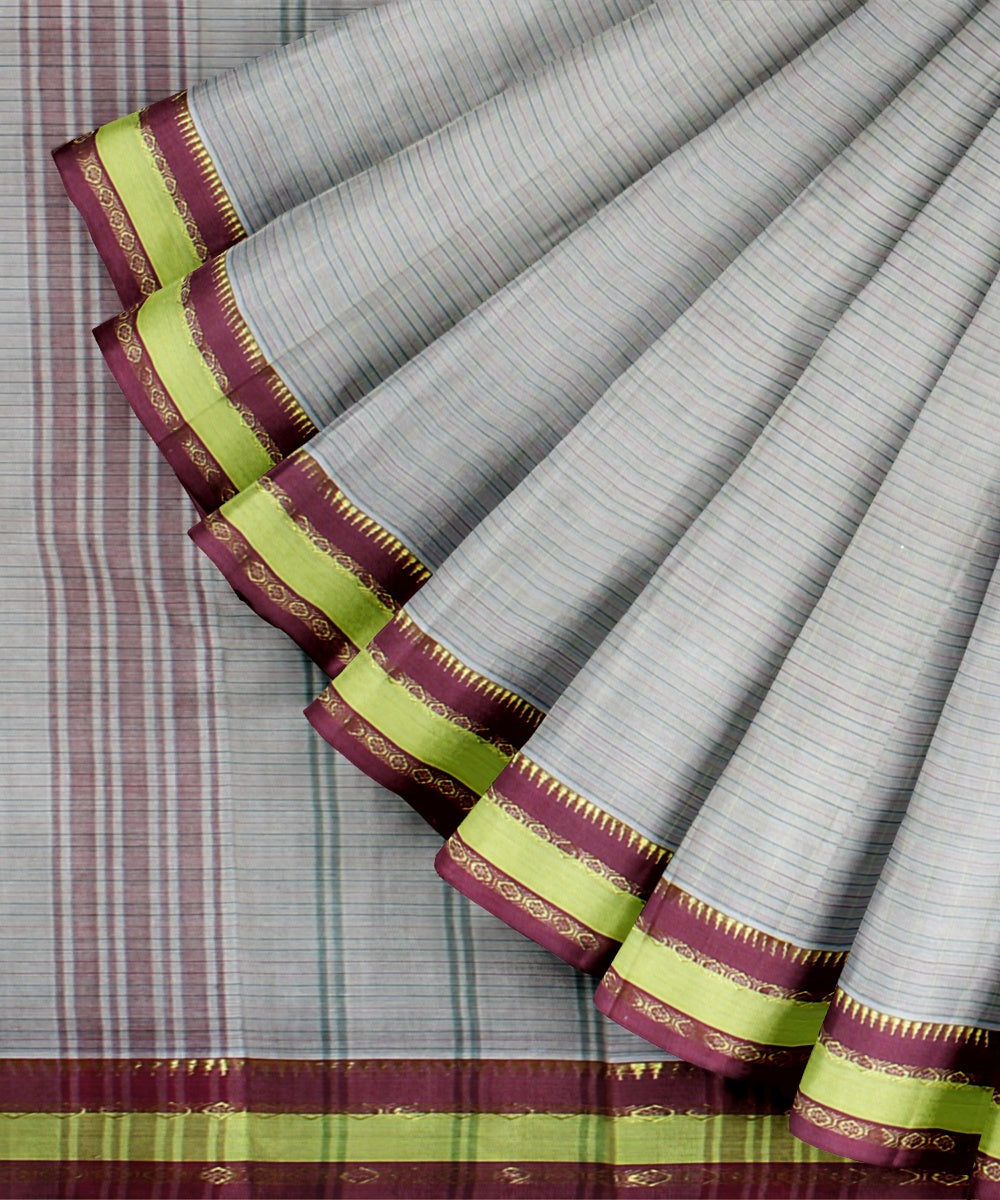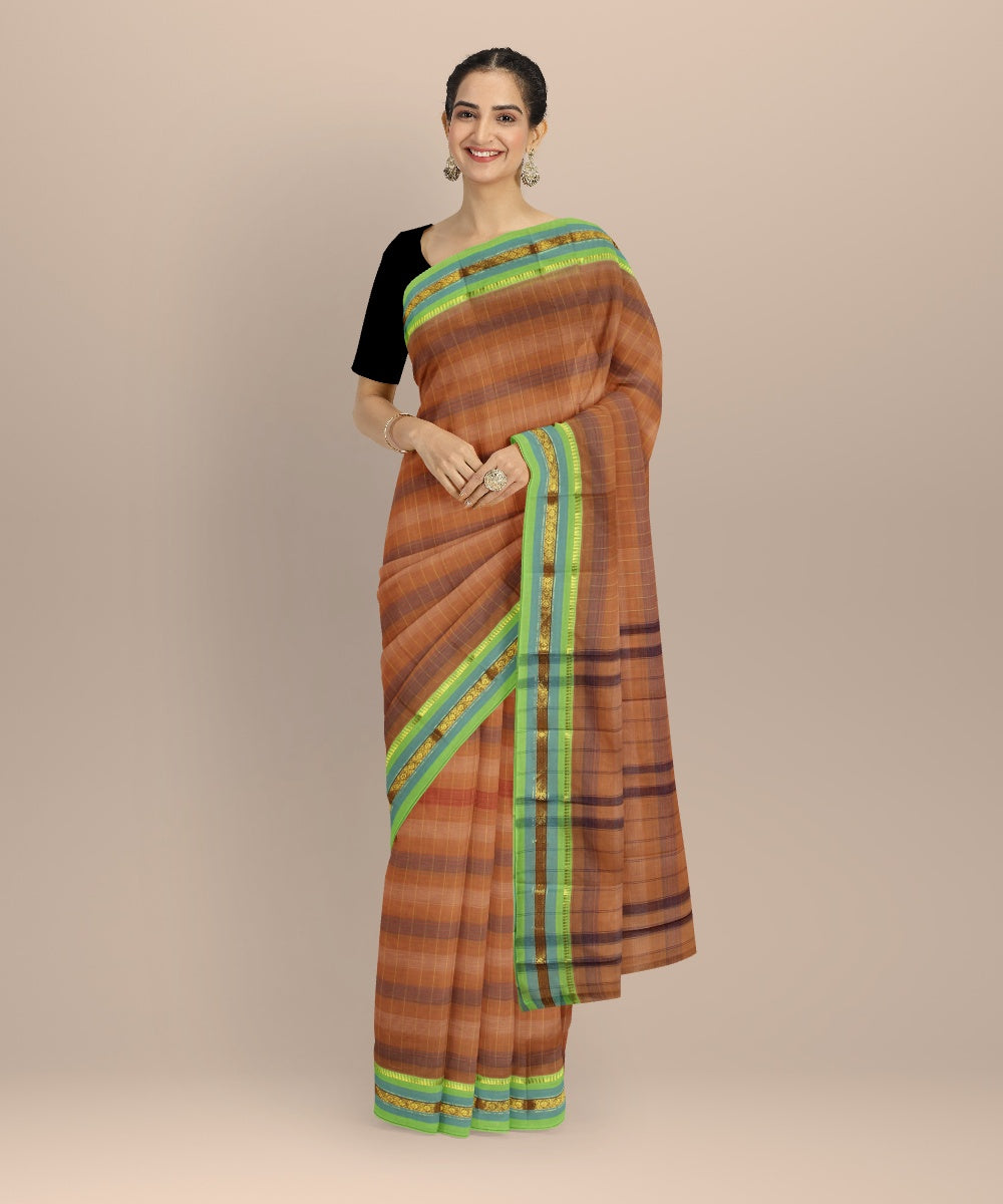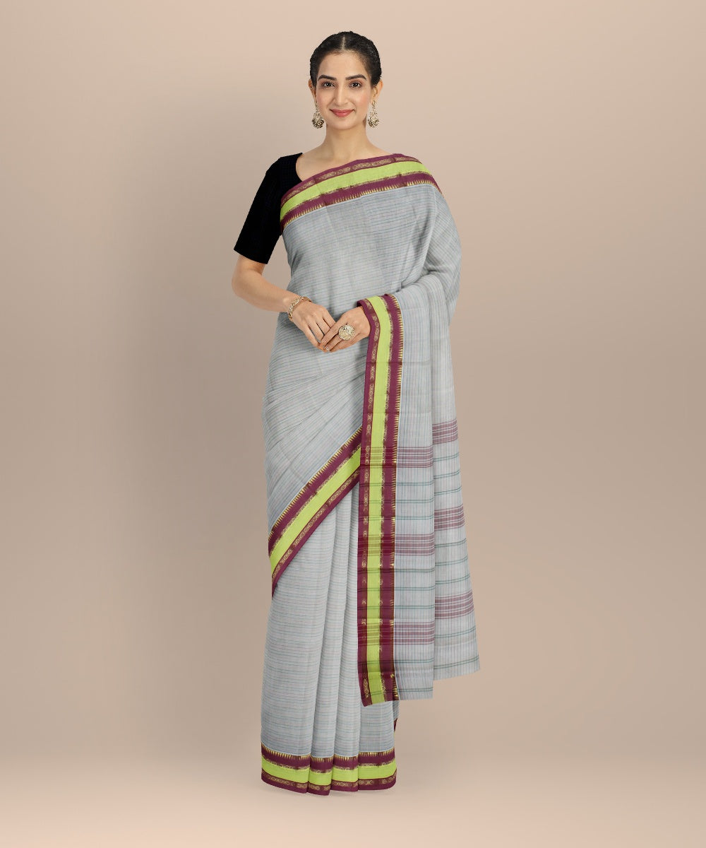 The Narayanpet sarees define comfort in simplicity through its handloom weaves. This GI tagged craft variety is woven at the clusters of Narayanpete in Andhra Pradesh. With a strong influence from the Maratha empire which started this tradition back in 1630, the identifying features for the saree are the simple striped borders and pallu with variations in the checks of the saree body. Choose to drape a narayanapete saree in cotton for formal work and silk sarees for festive celebrations.