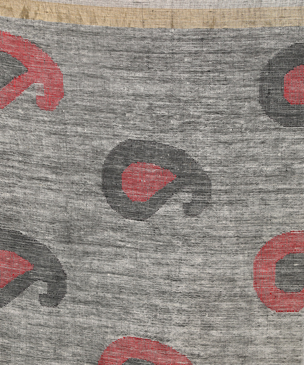 Grey kalka design handloom bengal linen saree