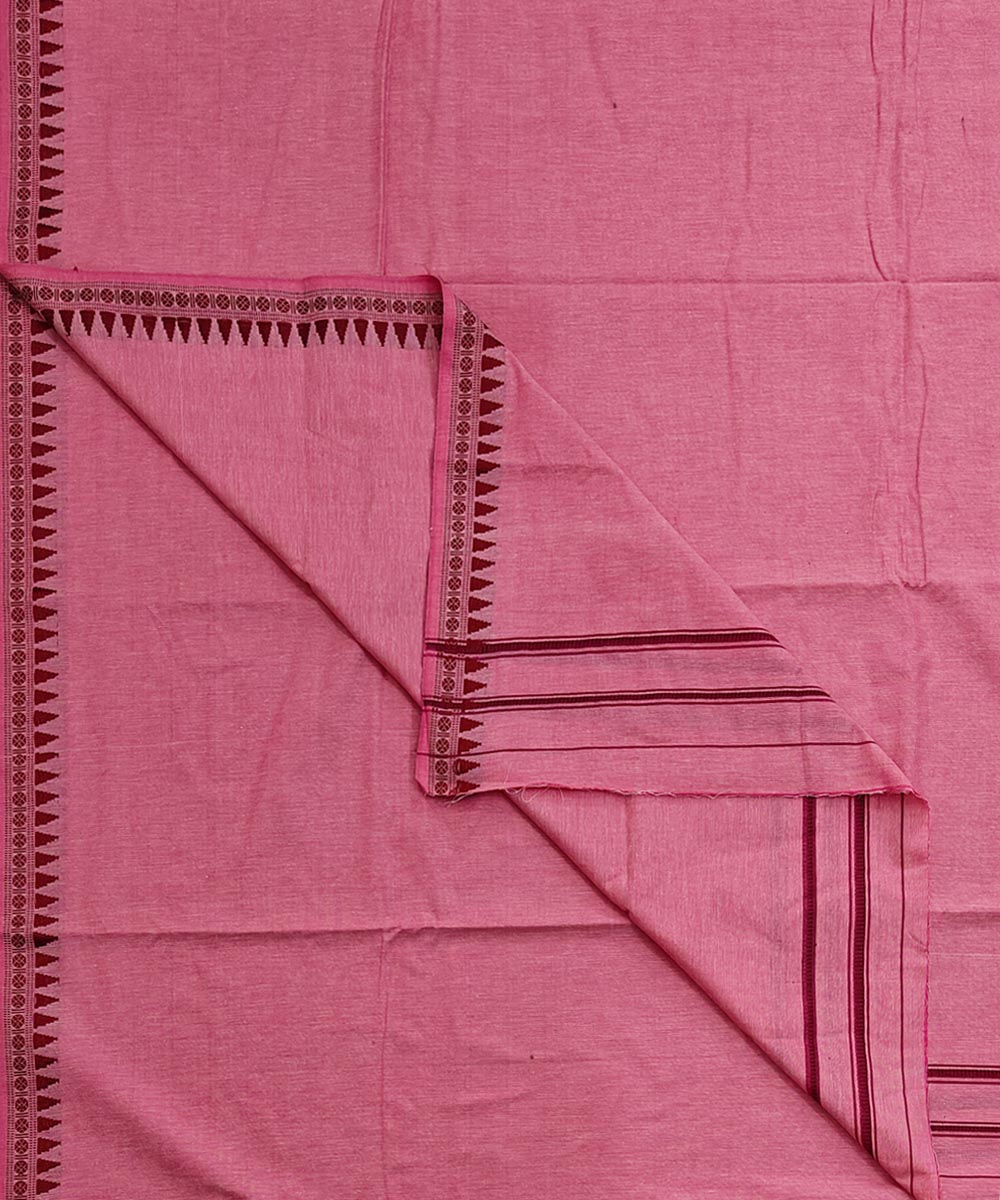 Pink maroon border handwoven cotton sambalpuri dhoti