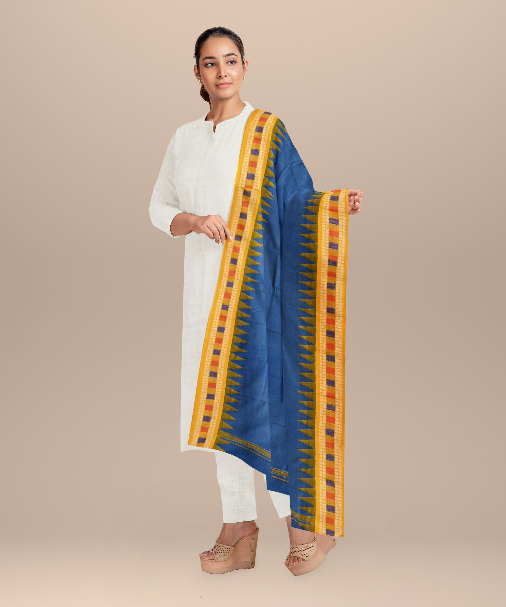 Navy blue orange cotton handloom nuapatna dupatta