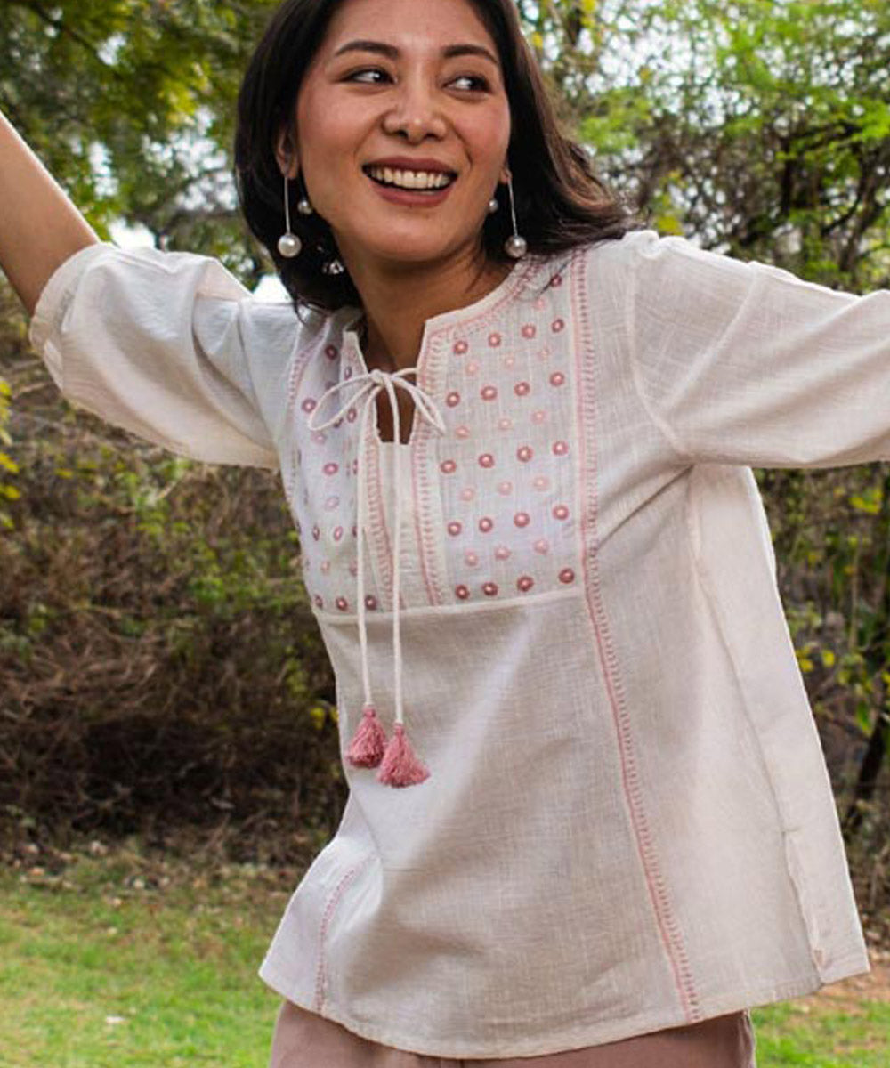 RangSutra is a company owned by over 2,000 artisans in villages and small towns across India — predominantly Rajasthan, Uttar Pradesh, Kashmir & Manipur. Their journey started in 2006, when the founder, Sumita Ghose, wanted to create sustainable livelihoods for highly skilled rural artisans by giving them market linkages. This vision remains the same even today: they continue to create opportunities for inclusive growth by acting as a bridge between artisans and markets, change and continuity, and tradition and modernity.  Each product produced follows a fair trade process that allows the artisans to thrive in and beyond their working environment through equal pay, fair wages, a safe working environment, and skills training.