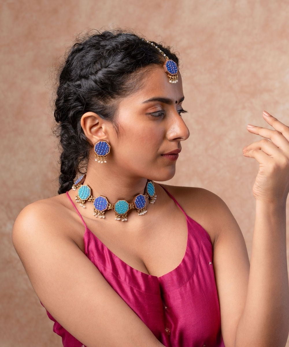 Discover the essence of sustainability in this festive range of our Repurposed Fabric and Wood Collection. This range is made using pure silk hand-embroidered fabrics. Our commitment to the environment shines through as we transform discarded fabric waste, generated during garment cutting, into elegant jewelry pieces. The Repurposed Wood we use is crafted from compressed wood dust, a byproduct of furniture production. This collection is not just jewelry; it's a statement of eco-consciousness. Elevate your festive attire with these exquisite pieces and wear your commitment to a greener world with pride.