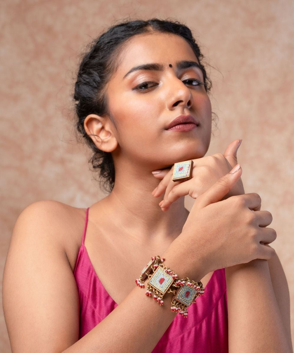 Discover the essence of sustainability in this festive range of our Repurposed Fabric and Wood Collection. This range is made using pure silk hand-embroidered fabrics. Our commitment to the environment shines through as we transform discarded fabric waste, generated during garment cutting, into elegant jewelry pieces. The Repurposed Wood we use is crafted from compressed wood dust, a byproduct of furniture production. This collection is not just jewelry; it's a statement of eco-consciousness. Elevate your festive attire with these exquisite pieces and wear your commitment to a greener world with pride.