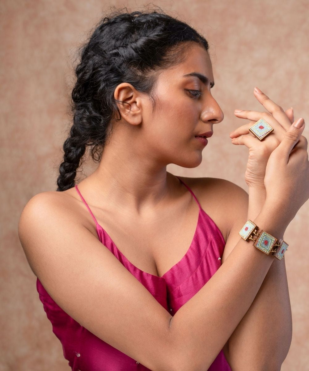 Discover the essence of sustainability in this festive range of our Repurposed Fabric and Wood Collection. This range is made using pure silk hand-embroidered fabrics. Our commitment to the environment shines through as we transform discarded fabric waste, generated during garment cutting, into elegant jewelry pieces. The Repurposed Wood we use is crafted from compressed wood dust, a byproduct of furniture production. This collection is not just jewelry; it's a statement of eco-consciousness. Elevate your festive attire with these exquisite pieces and wear your commitment to a greener world with pride.