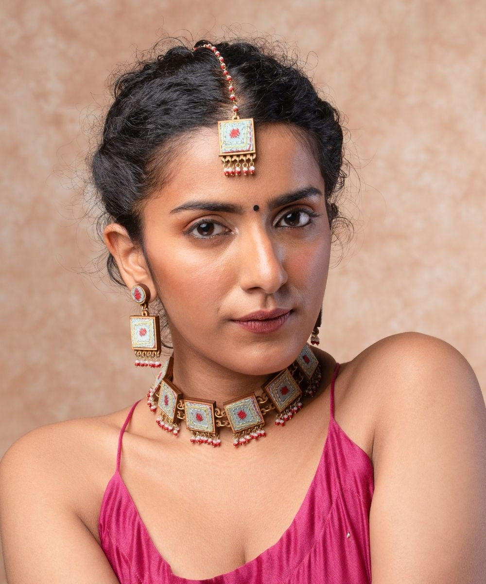 Discover the essence of sustainability in this festive range of our Repurposed Fabric and Wood Collection. This range is made using pure silk hand-embroidered fabrics. Our commitment to the environment shines through as we transform discarded fabric waste, generated during garment cutting, into elegant jewelry pieces. The Repurposed Wood we use is crafted from compressed wood dust, a byproduct of furniture production. This collection is not just jewelry; it's a statement of eco-consciousness. Elevate your festive attire with these exquisite pieces and wear your commitment to a greener world with pride.
