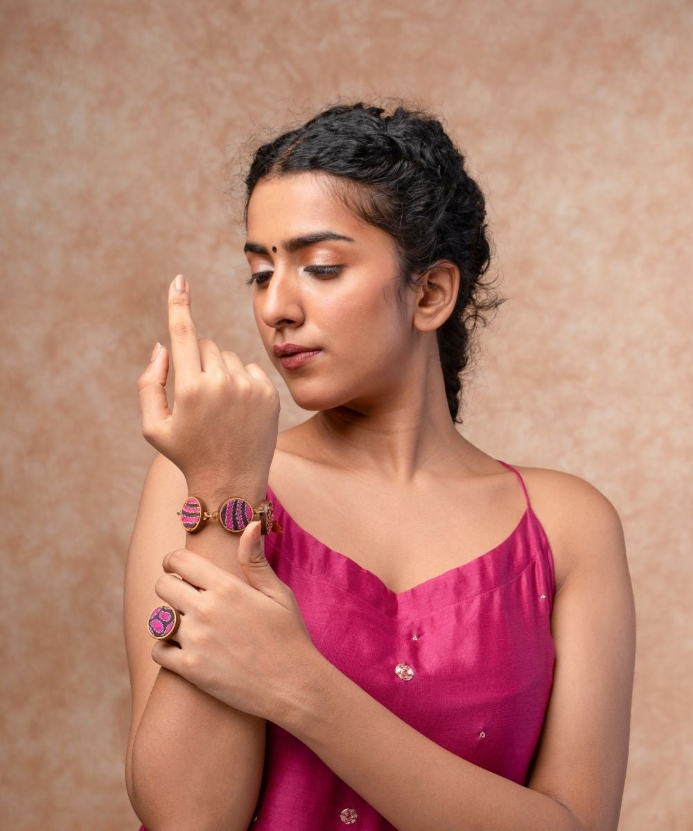 Discover the essence of sustainability in this festive range of our Repurposed Fabric and Wood Collection. This range is made using pure silk hand-embroidered fabrics. Our commitment to the environment shines through as we transform discarded fabric waste, generated during garment cutting, into elegant jewelry pieces. The Repurposed Wood we use is crafted from compressed wood dust, a byproduct of furniture production. This collection is not just jewelry; it's a statement of eco-consciousness. Elevate your festive attire with these exquisite pieces and wear your commitment to a greener world with pride.