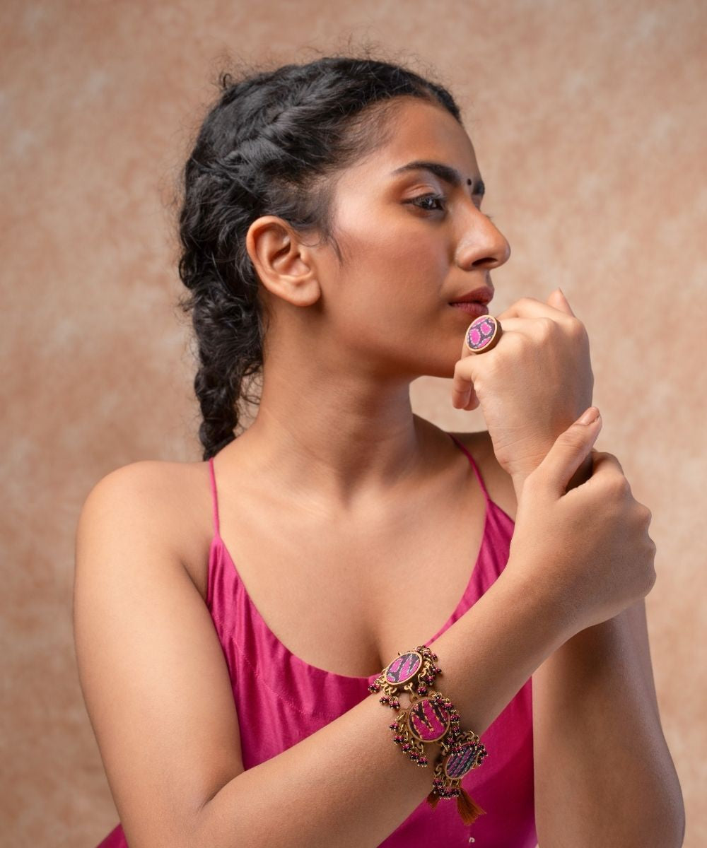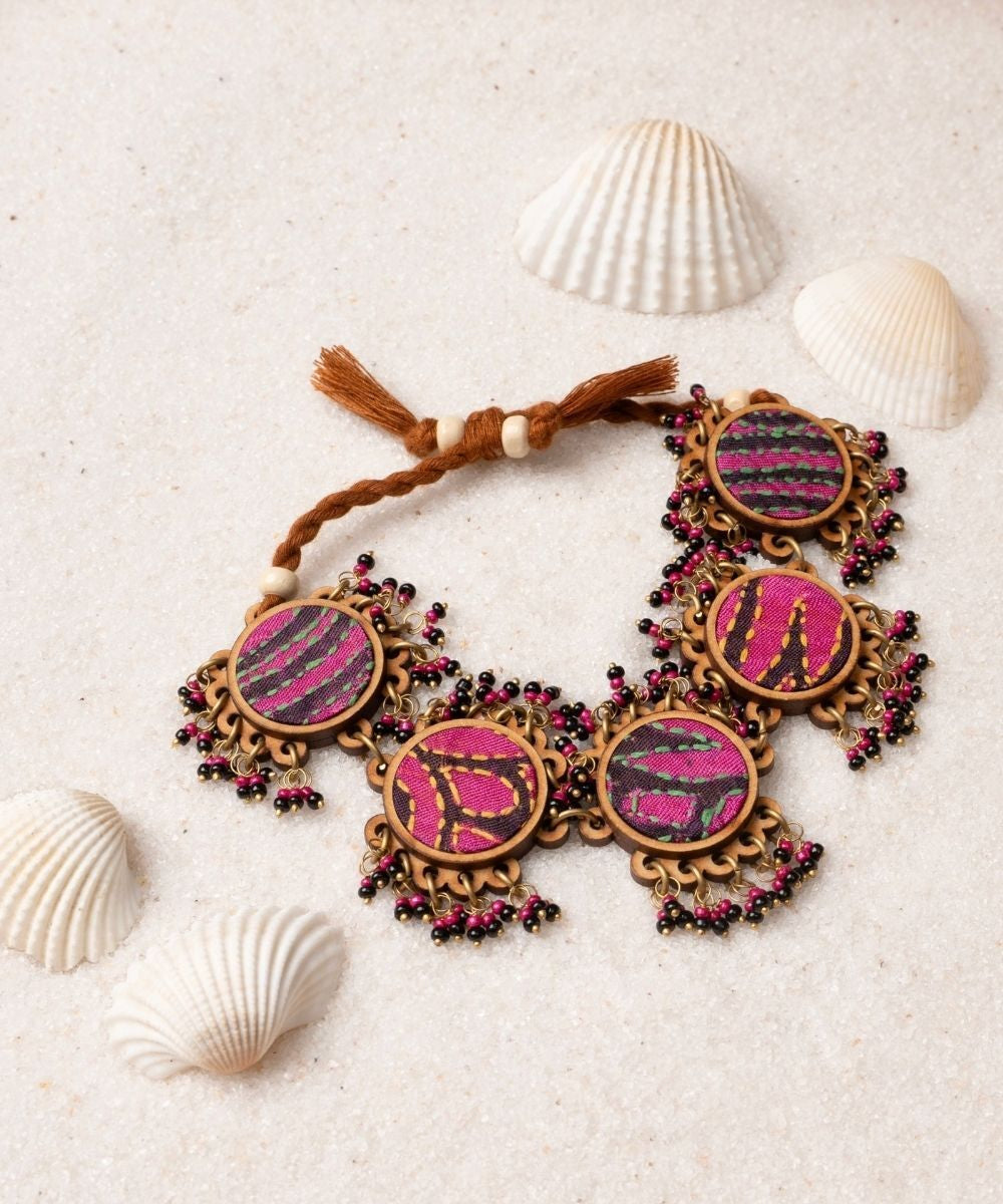 Discover the essence of sustainability in this festive range of our Repurposed Fabric and Wood Collection. This range is made using pure silk hand-embroidered fabrics. Our commitment to the environment shines through as we transform discarded fabric waste, generated during garment cutting, into elegant jewelry pieces. The Repurposed Wood we use is crafted from compressed wood dust, a byproduct of furniture production. This collection is not just jewelry; it's a statement of eco-consciousness. Elevate your festive attire with these exquisite pieces and wear your commitment to a greener world with pride.