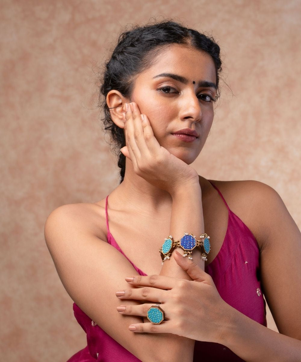 Discover the essence of sustainability in this festive range of our Repurposed Fabric and Wood Collection. This range is made using pure silk hand-embroidered fabrics. Our commitment to the environment shines through as we transform discarded fabric waste, generated during garment cutting, into elegant jewelry pieces. The Repurposed Wood we use is crafted from compressed wood dust, a byproduct of furniture production. This collection is not just jewelry; it's a statement of eco-consciousness. Elevate your festive attire with these exquisite pieces and wear your commitment to a greener world with pride.