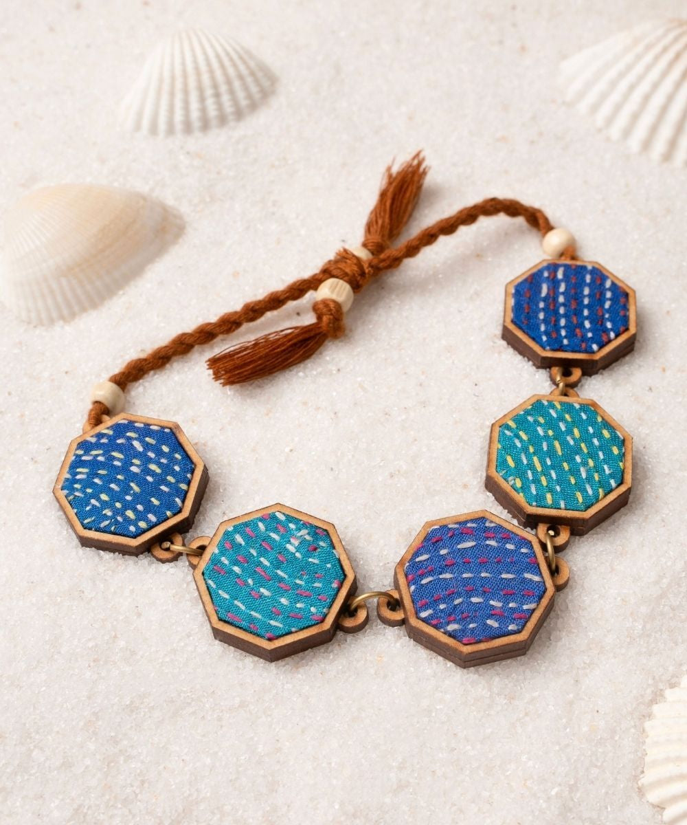 Discover the essence of sustainability in this festive range of our Repurposed Fabric and Wood Collection. This range is made using pure silk hand-embroidered fabrics. Our commitment to the environment shines through as we transform discarded fabric waste, generated during garment cutting, into elegant jewelry pieces. The Repurposed Wood we use is crafted from compressed wood dust, a byproduct of furniture production. This collection is not just jewelry; it's a statement of eco-consciousness. Elevate your festive attire with these exquisite pieces and wear your commitment to a greener world with pride.