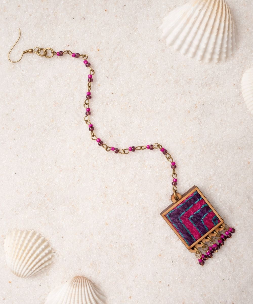Pink purple kantha repurposed silk fabric and wood  tikka