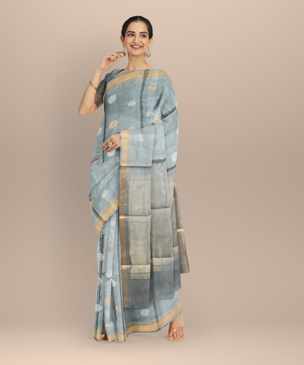 Grey golden tussar silk handwoven chhattisgarh saree