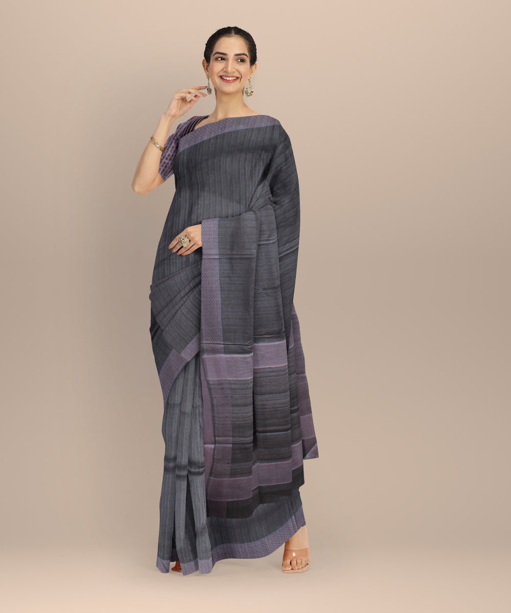 Grey tussar silk handwoven chhattisgarh handloom saree