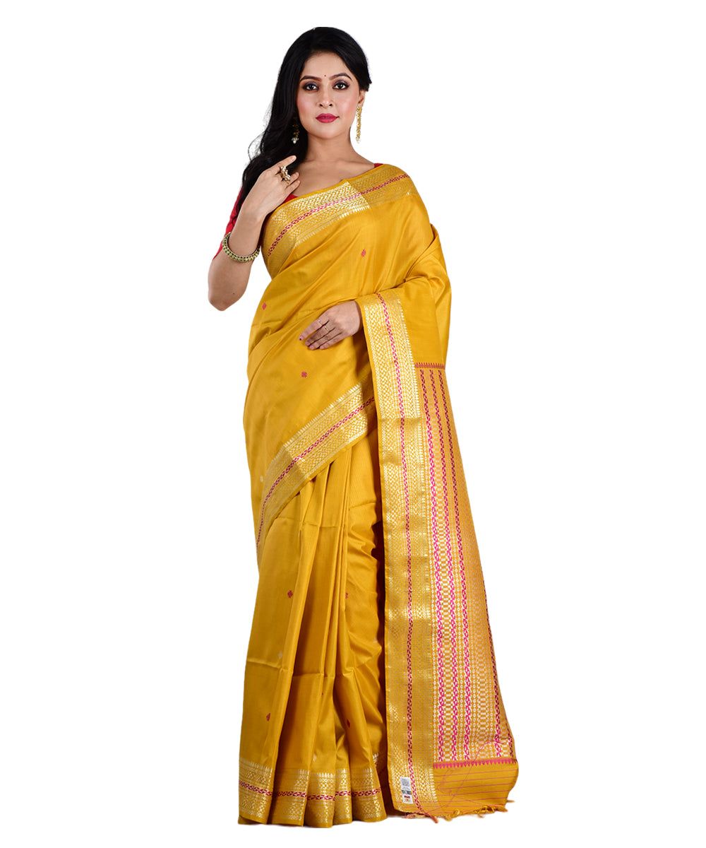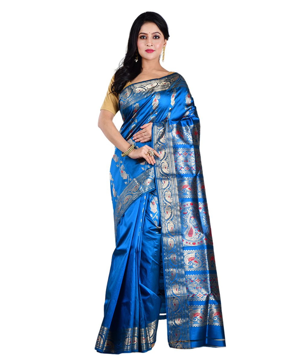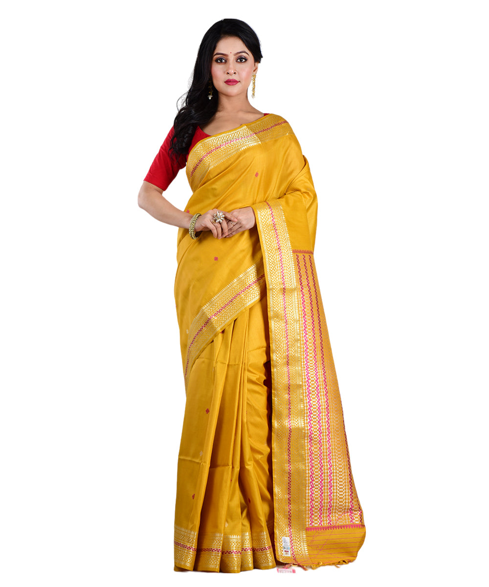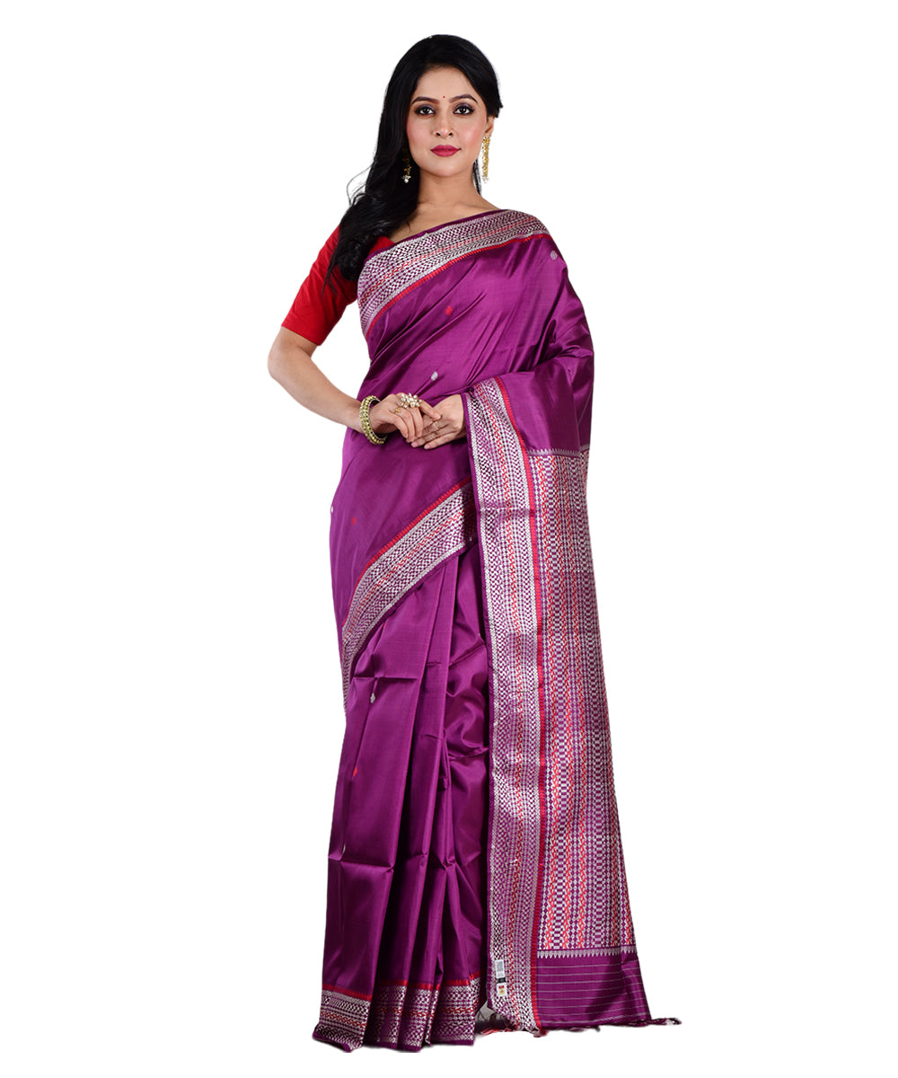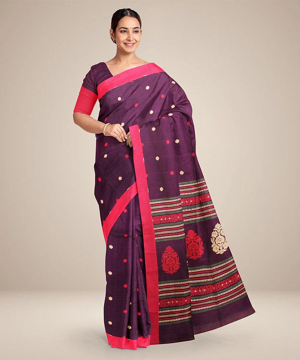 While synonymous with the reds and whites of Durga pooja, discover more of Bengal handloom varieties - Intricate jamdanis, skilled Kantha stitches, ancient baluchari weaves, simple cotton tants, explore more below.