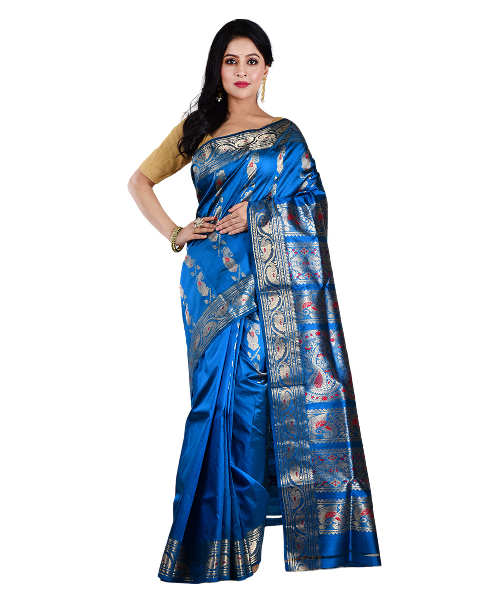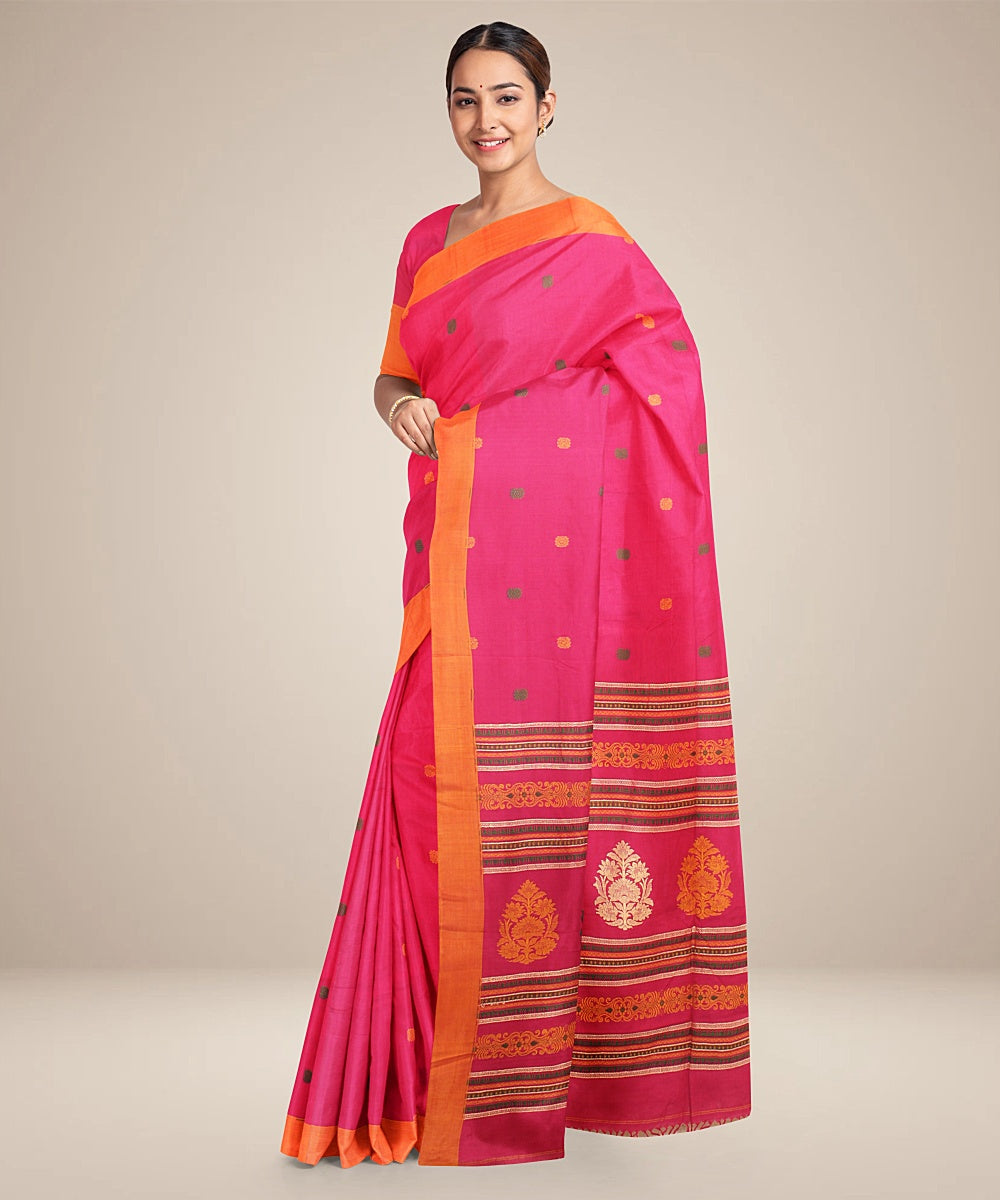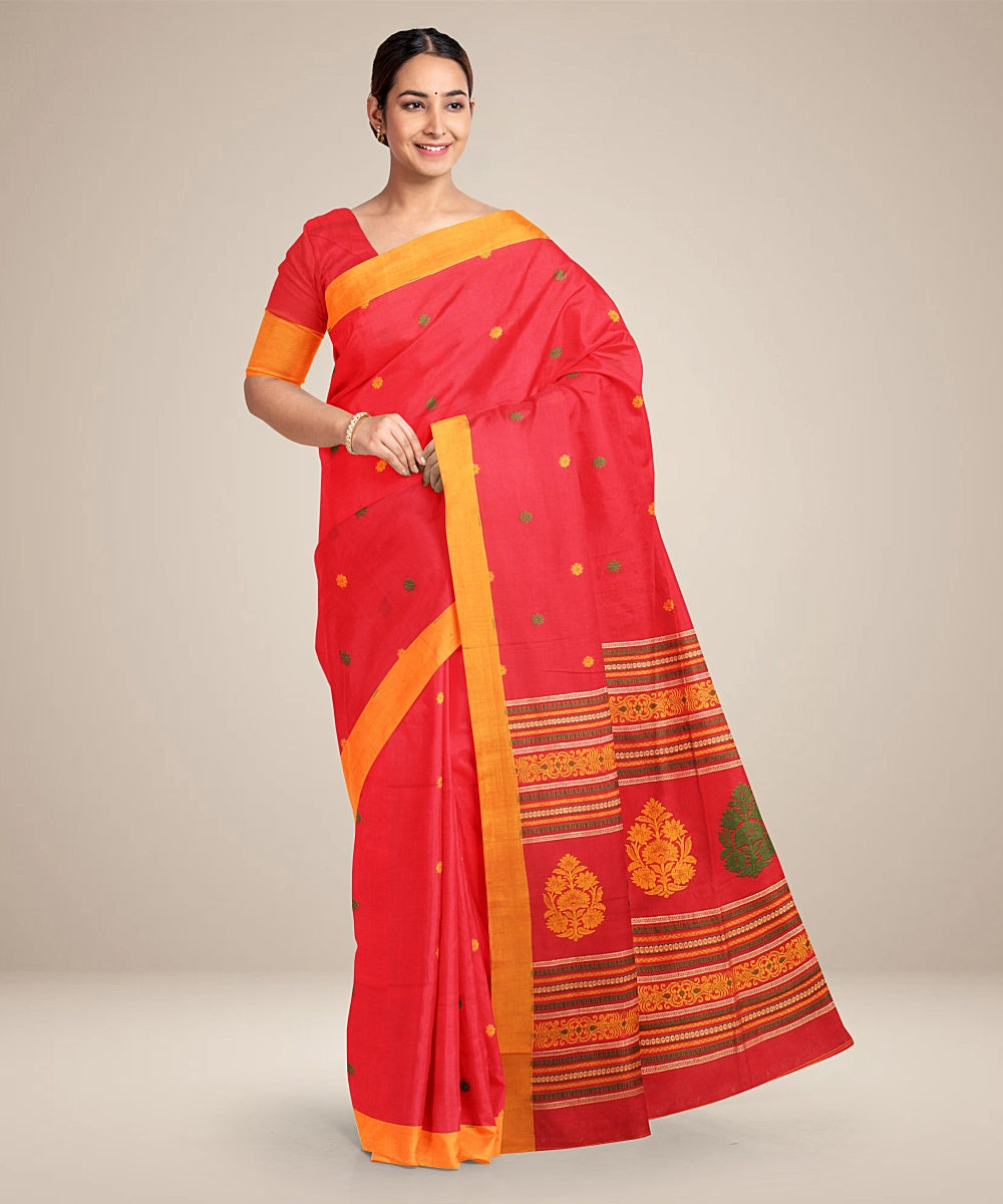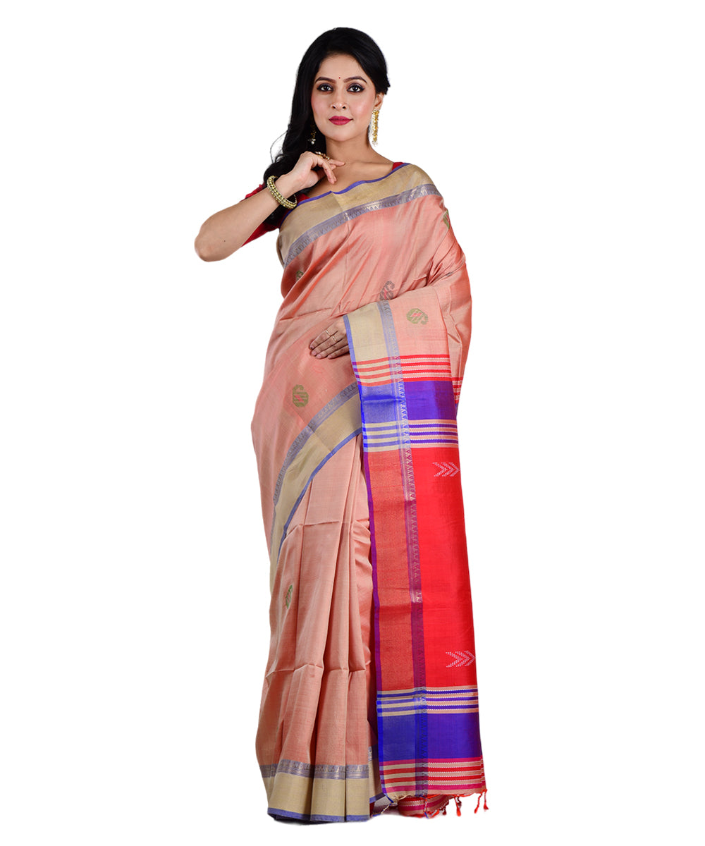 While synonymous with the reds and whites of Durga pooja, discover more of Bengal handloom varieties - Intricate jamdanis, skilled Kantha stitches, ancient baluchari weaves, simple cotton tants, explore more below.