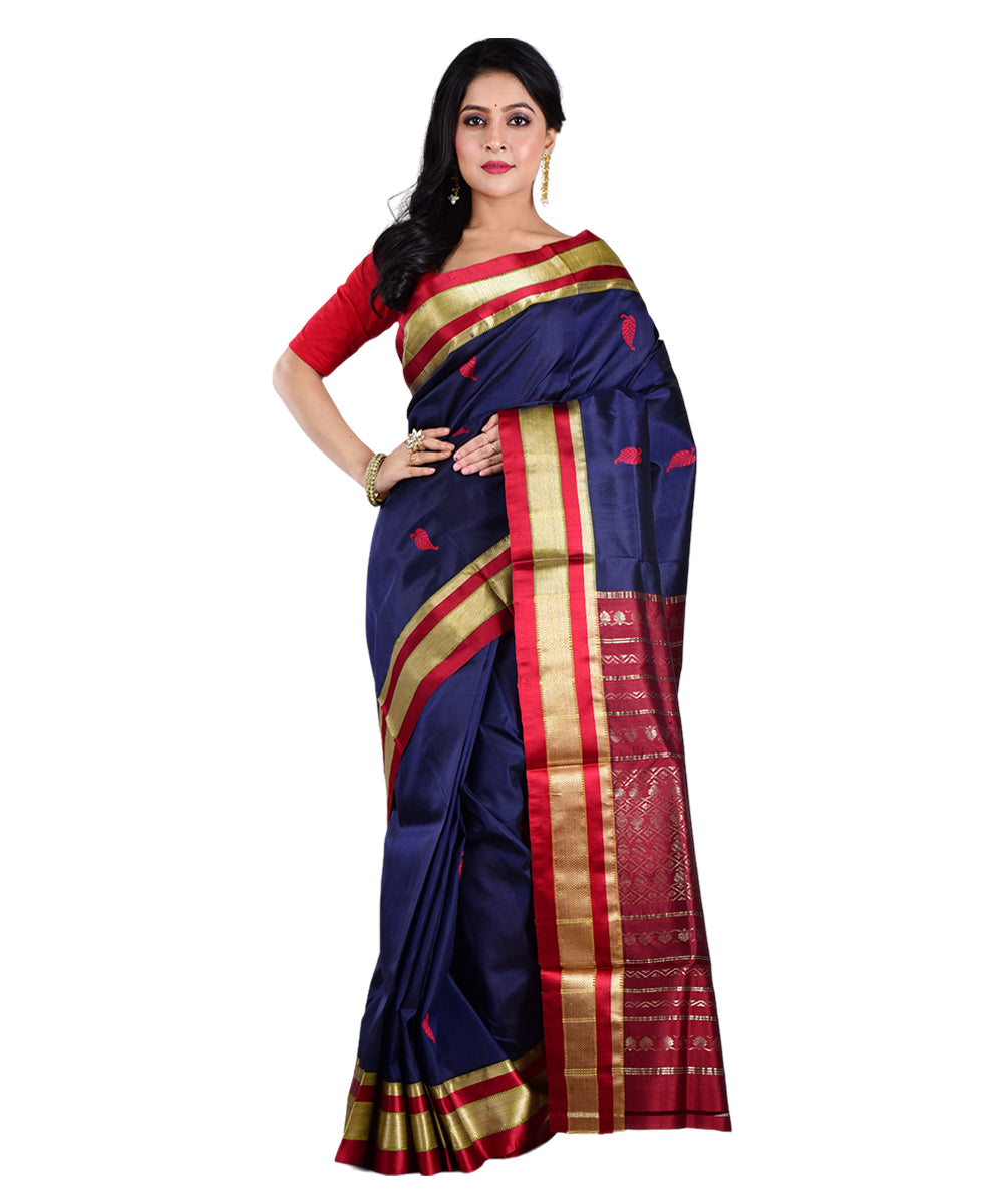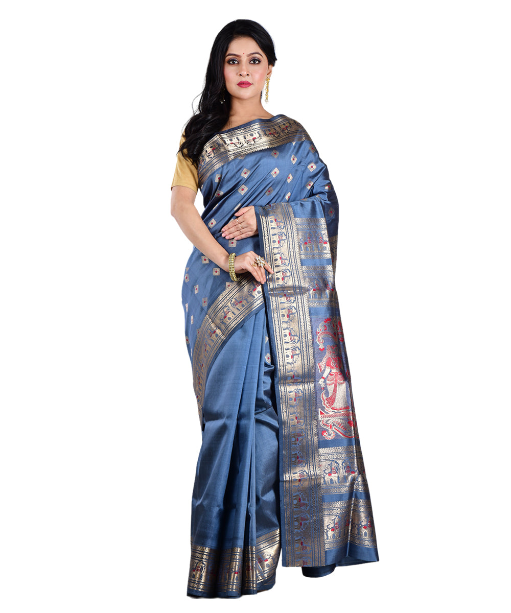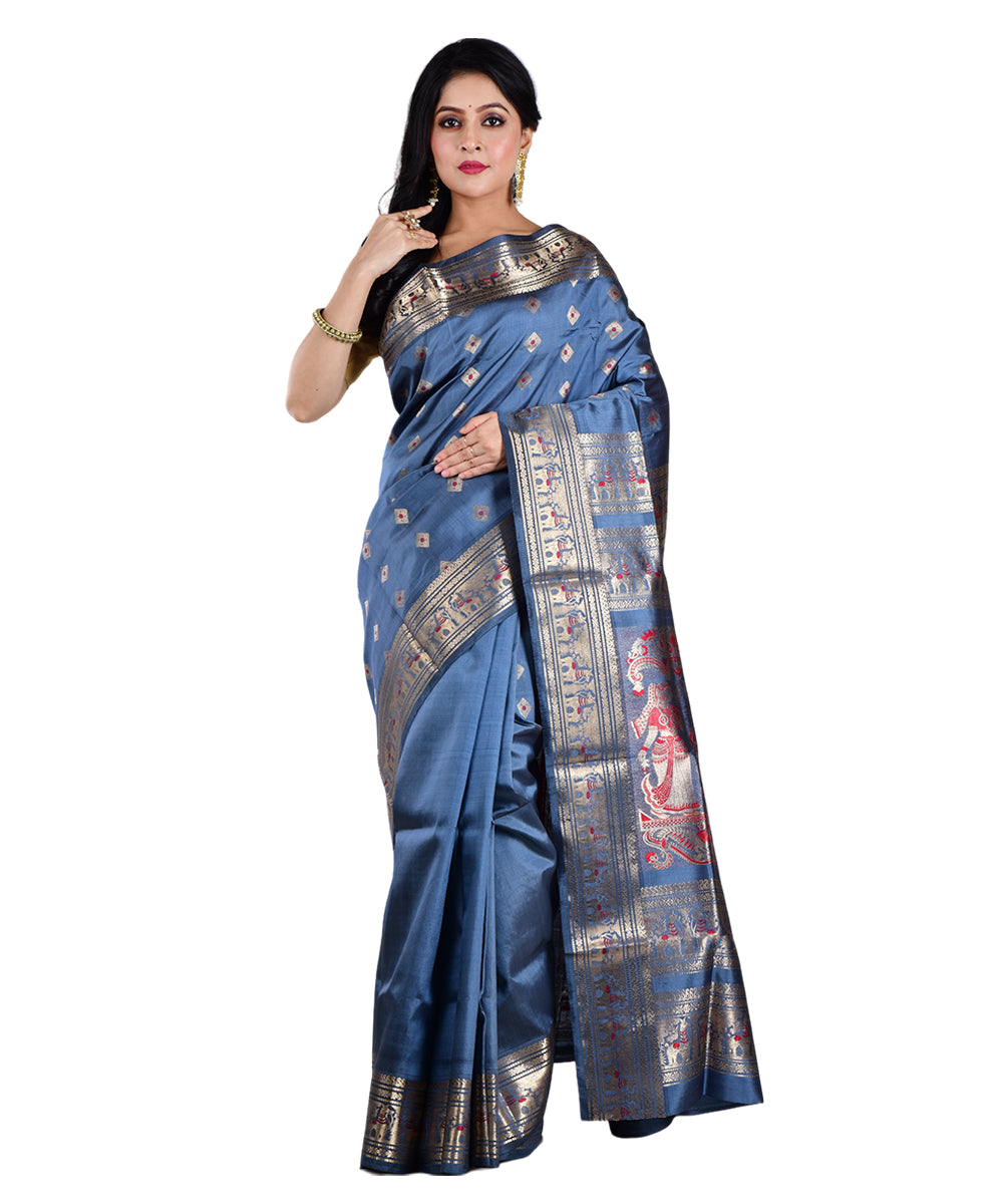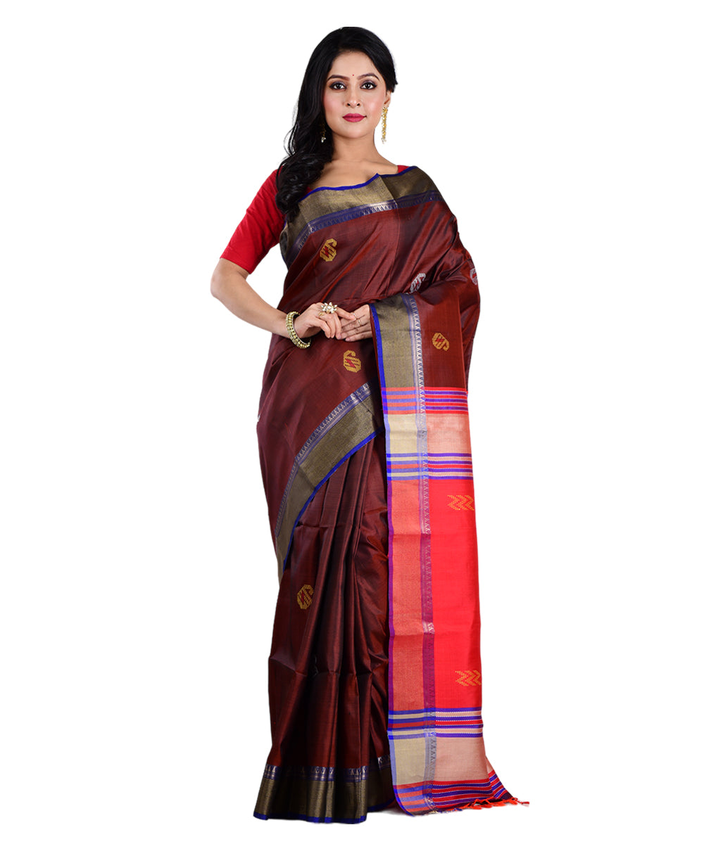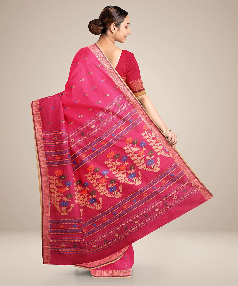 While synonymous with the reds and whites of Durga pooja, discover more of Bengal handloom varieties - Intricate jamdanis, skilled Kantha stitches, ancient baluchari weaves, simple cotton tants, explore more below.