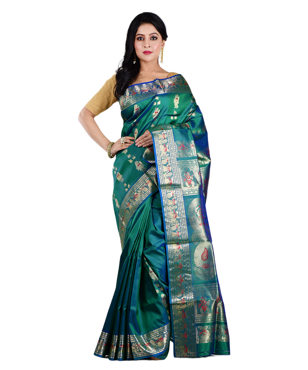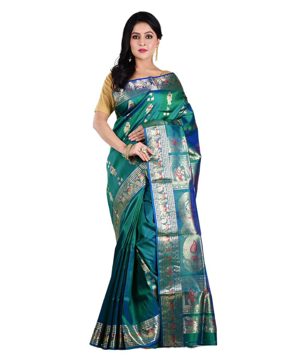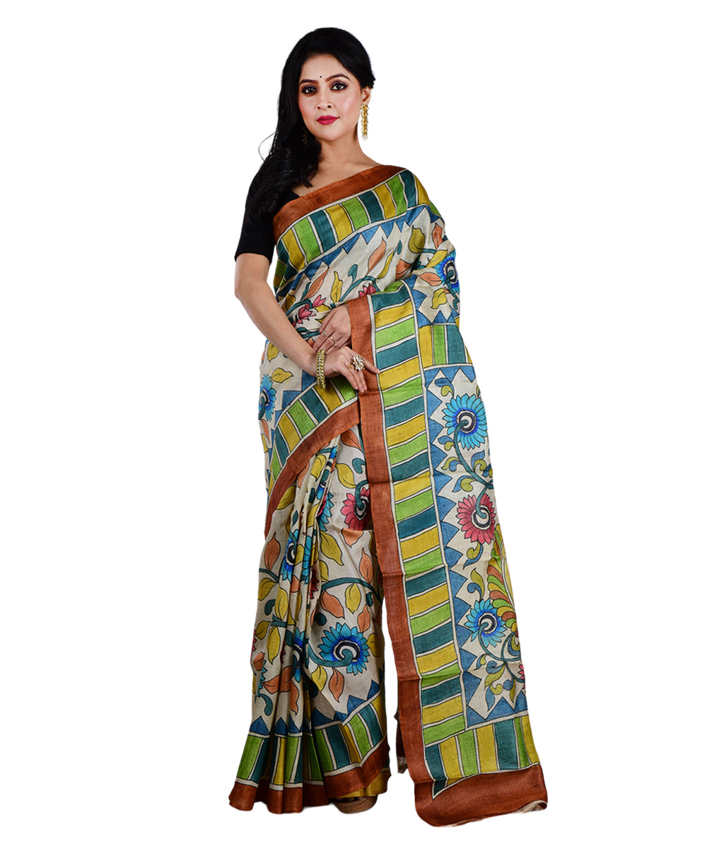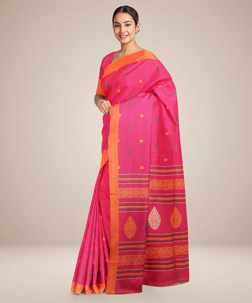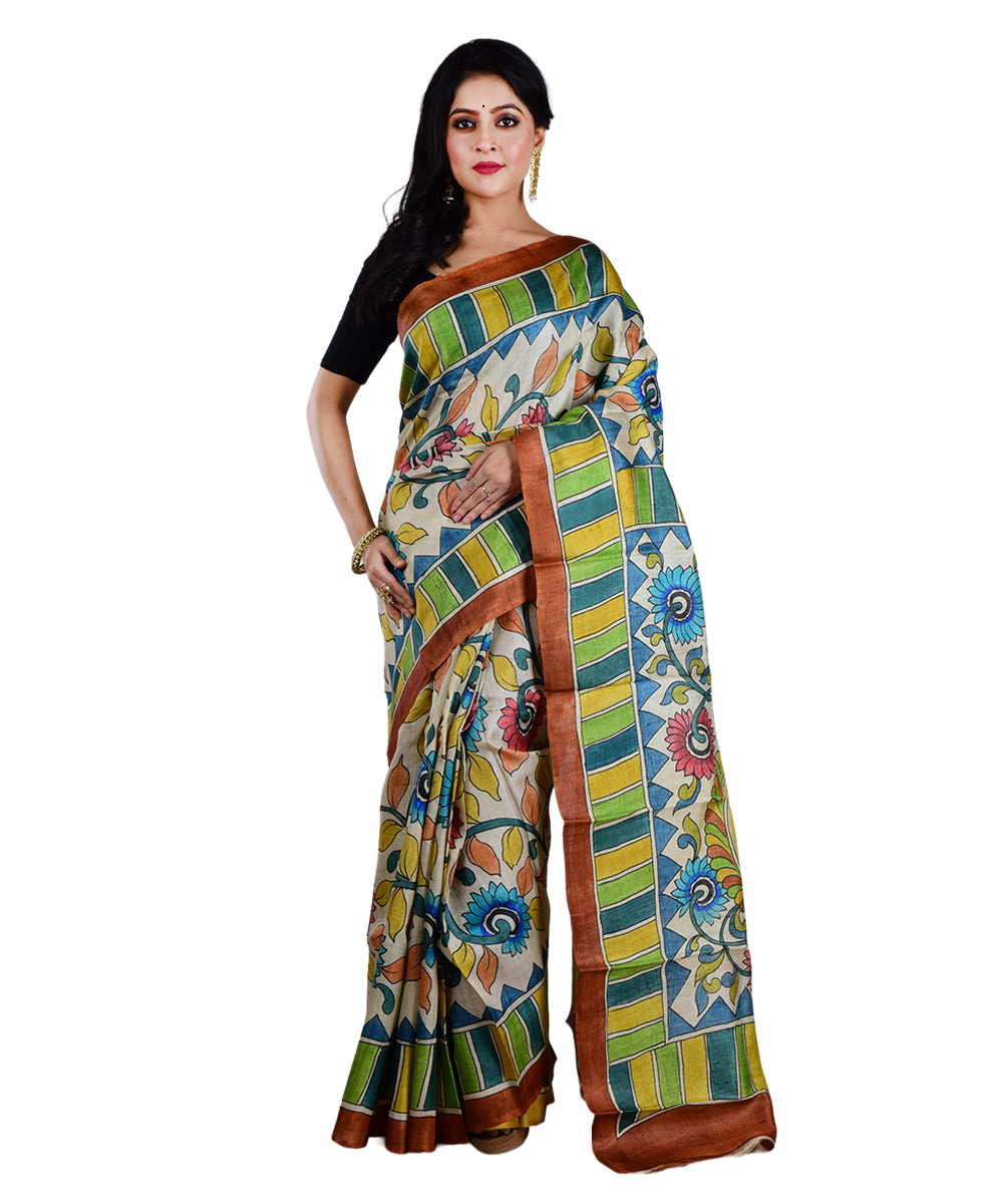 While synonymous with the reds and whites of Durga pooja, discover more of Bengal handloom varieties - Intricate jamdanis, skilled Kantha stitches, ancient baluchari weaves, simple cotton tants, explore more below.