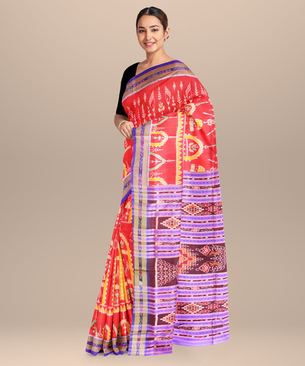 The khandua sarees are a handloom specialty from the eastern clusters of Odisha. An ikkat tie dyed silk saree of Odisha, beautiful temple borders in small to elaborate variations are featured beautifully in each of these sarees. Traditionally popular as silken rich wedding trousseau and famously offered to the Lord Jagannath of Puri, the contemporary designs now come in plain saree body with minimal designs on the borders and the pallu