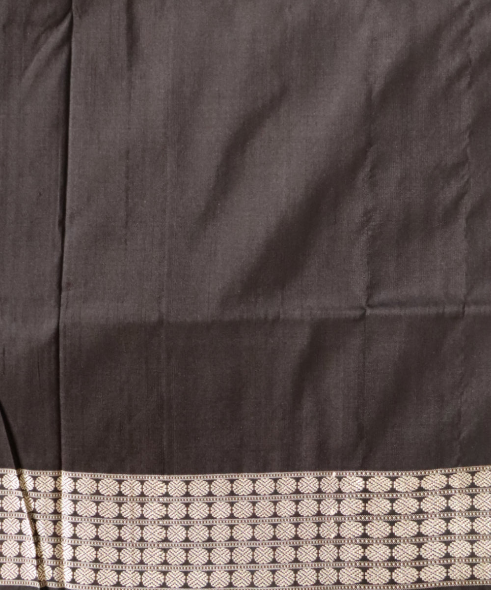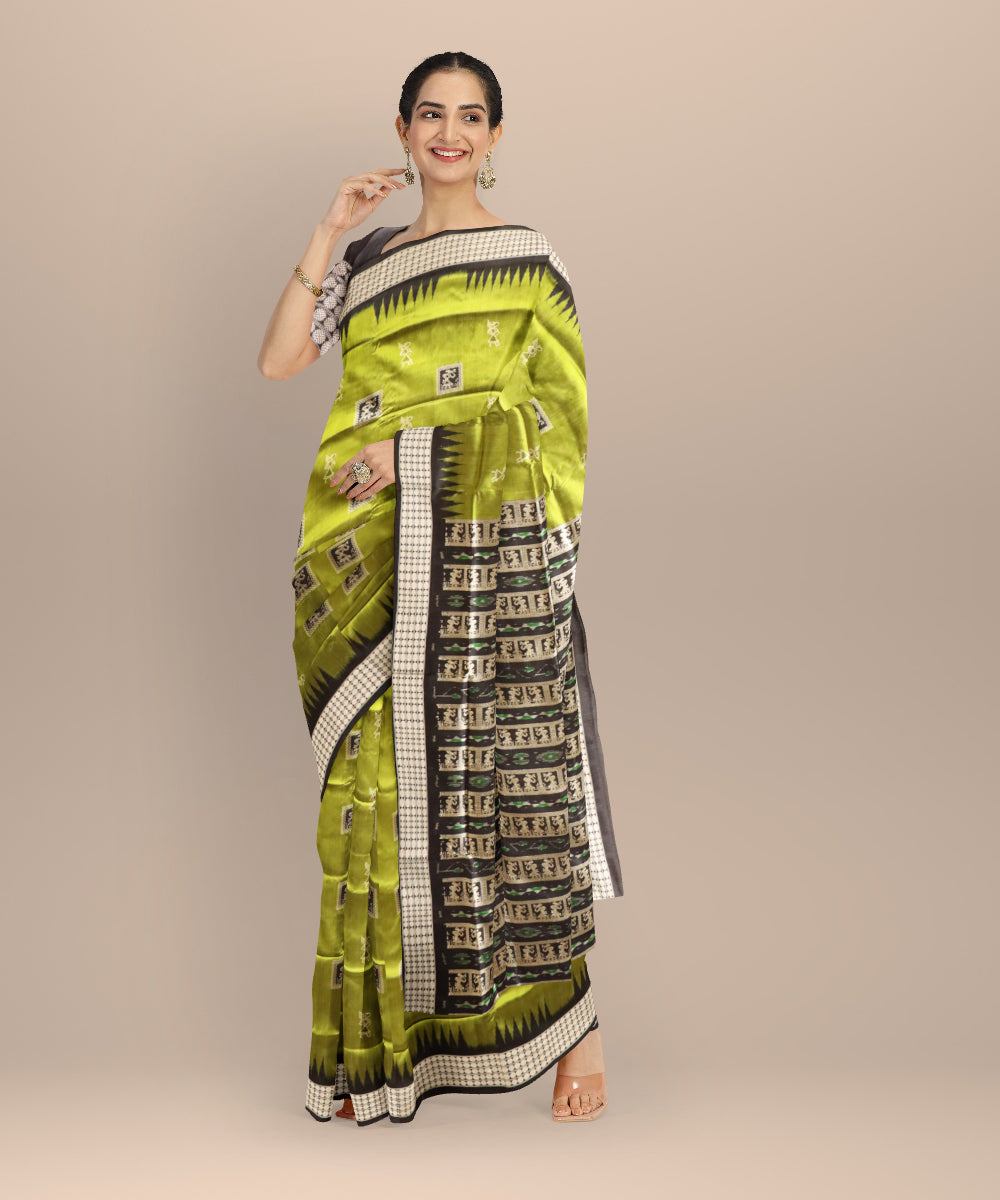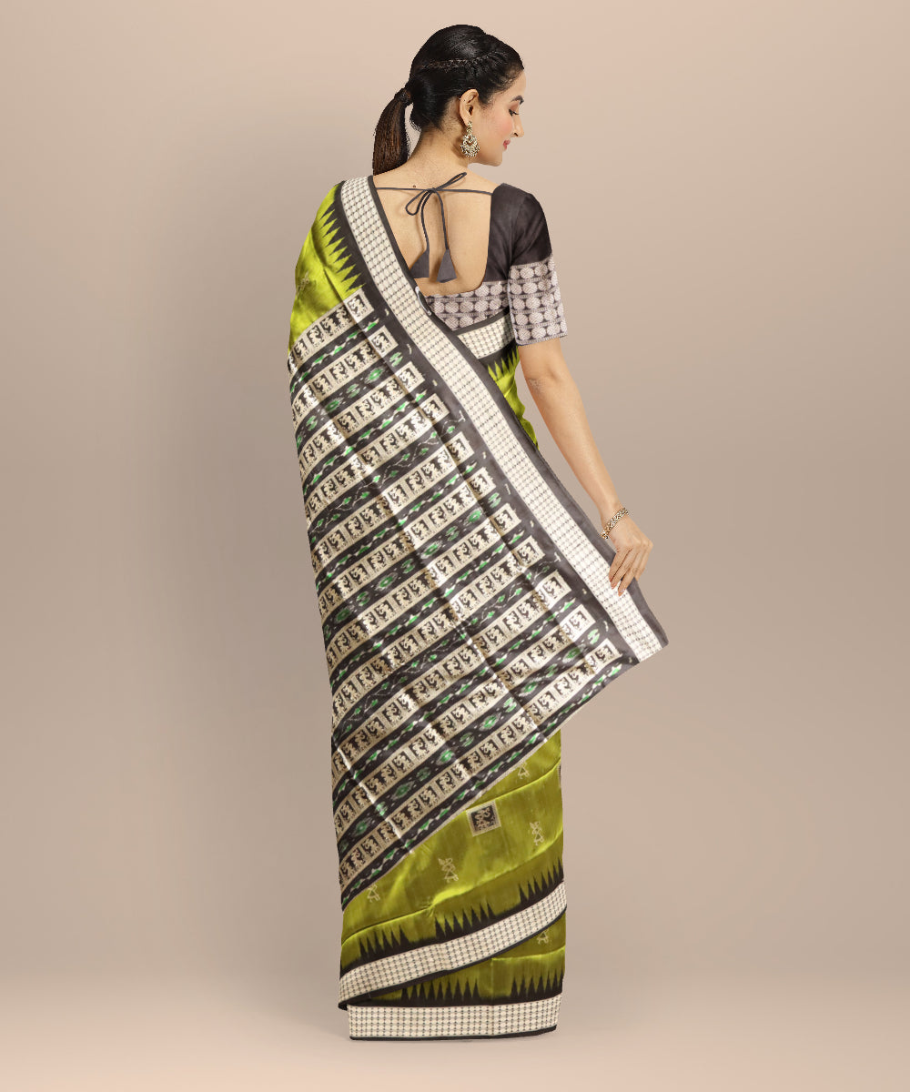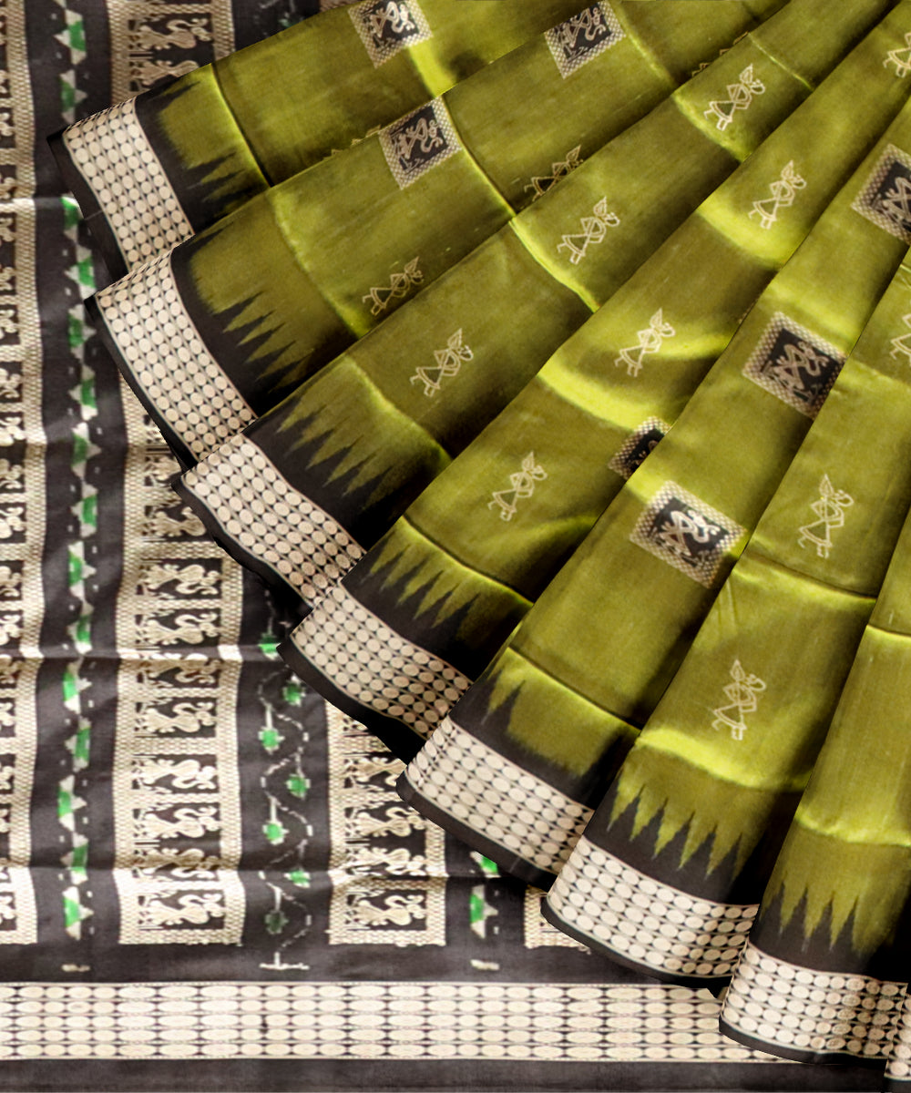 Olive green black silk handloom bomkai saree