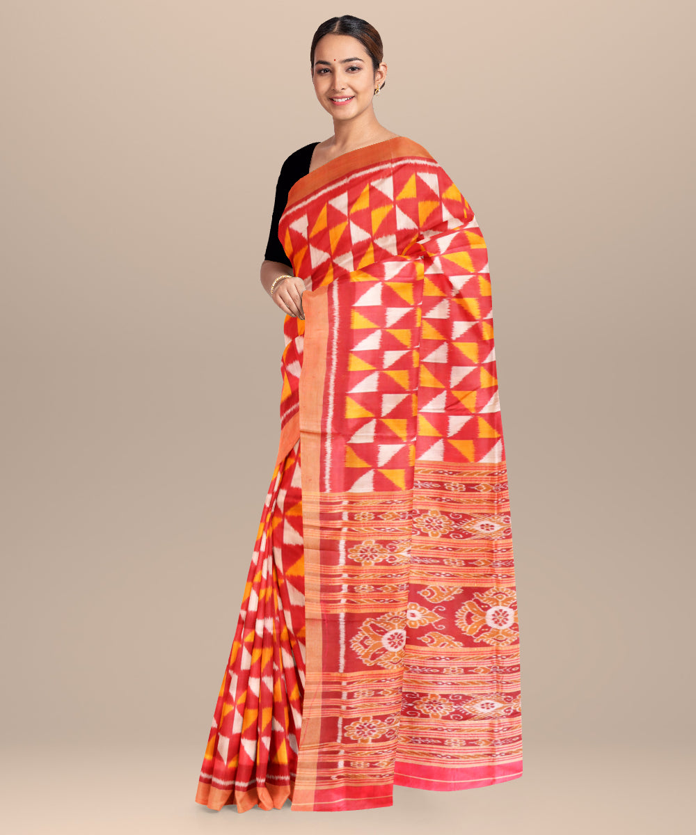 The khandua sarees are a handloom specialty from the eastern clusters of Odisha. An ikkat tie dyed silk saree of Odisha, beautiful temple borders in small to elaborate variations are featured beautifully in each of these sarees. Traditionally popular as silken rich wedding trousseau and famously offered to the Lord Jagannath of Puri, the contemporary designs now come in plain saree body with minimal designs on the borders and the pallu