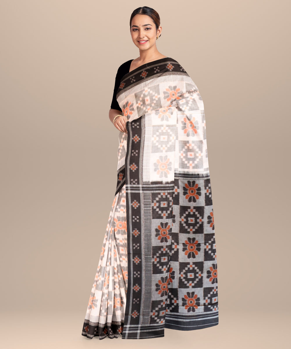 White grey black cotton handloom nuapatna saree