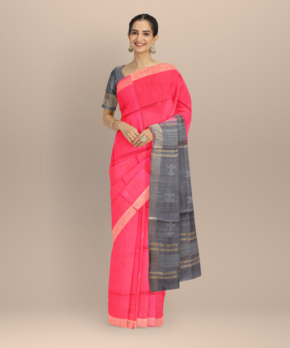 Red grey raw silk hand loom bhagalpur saree
